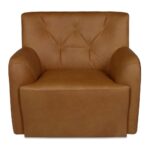 A classic shape, reimagined for movement. The Sullivan Swivel Chair combines a high tufted back, gently flared arms, and top-grain leather that develops character over time. Upholstered in warm tan with a vintage-inspired finish, it feels inviting and timeless. Set on a 360-degree swivel base, Sullivan keeps heritage design in motion, pairing timeless form with everyday flexibility.
