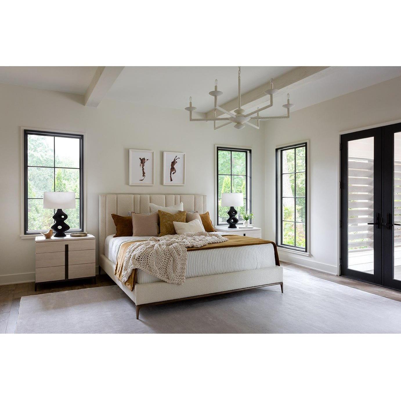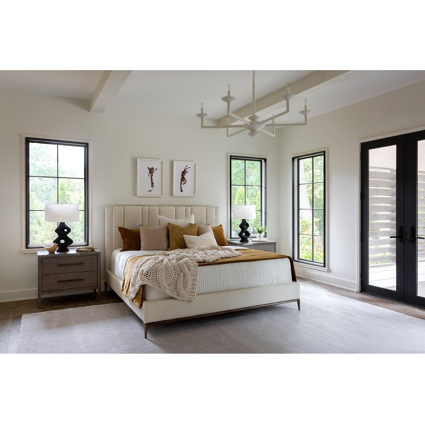 Radiating a cozy, chic sensibility, this plush upholstered headboard with vertical channeling provides visual interest.