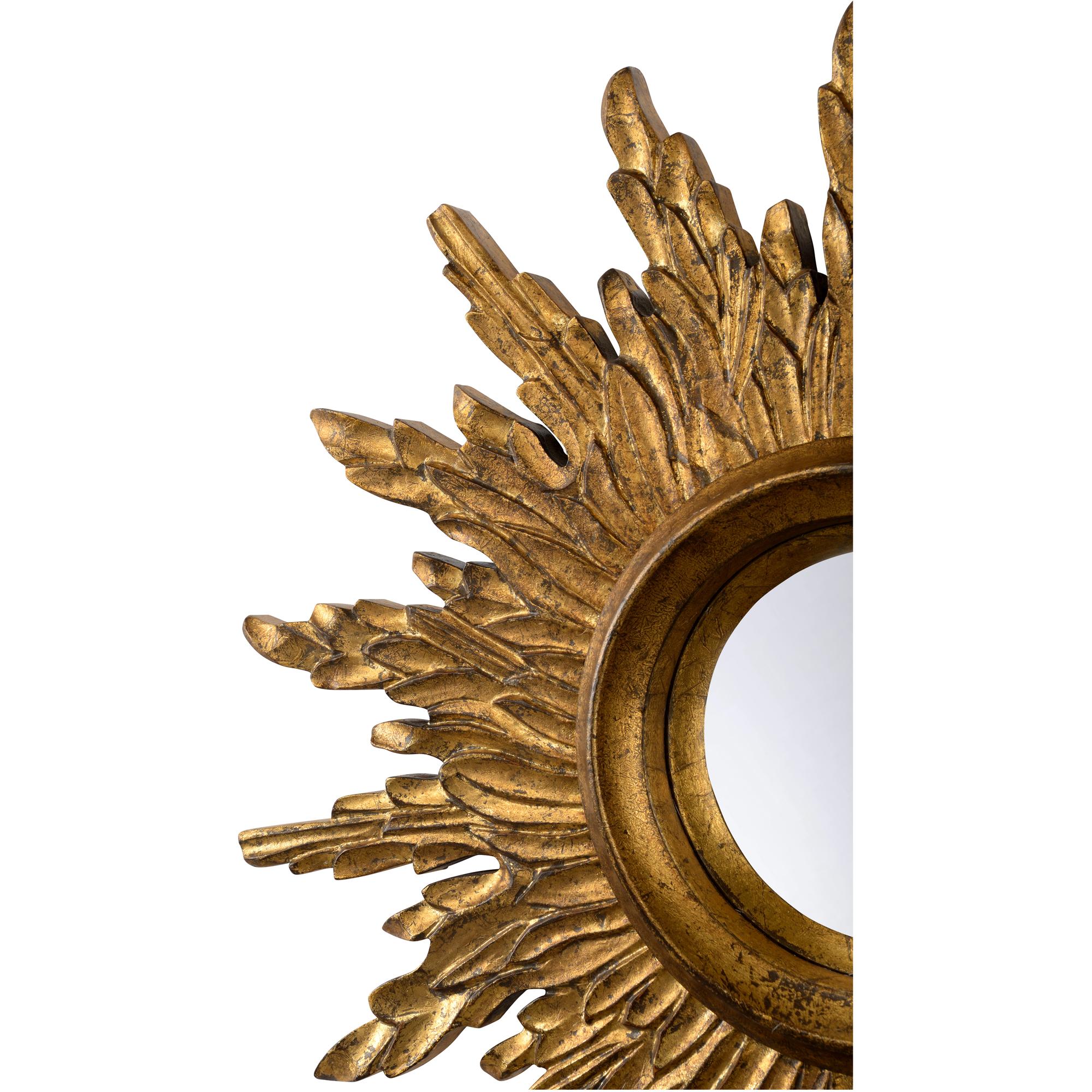 Ornate details combined with a glistening gold finish, the convex Sunbeam Mirror will brighten any room. Place in a grouping with 385942, 385943, 385944, 385945 or by itself to create a sublime focal point.