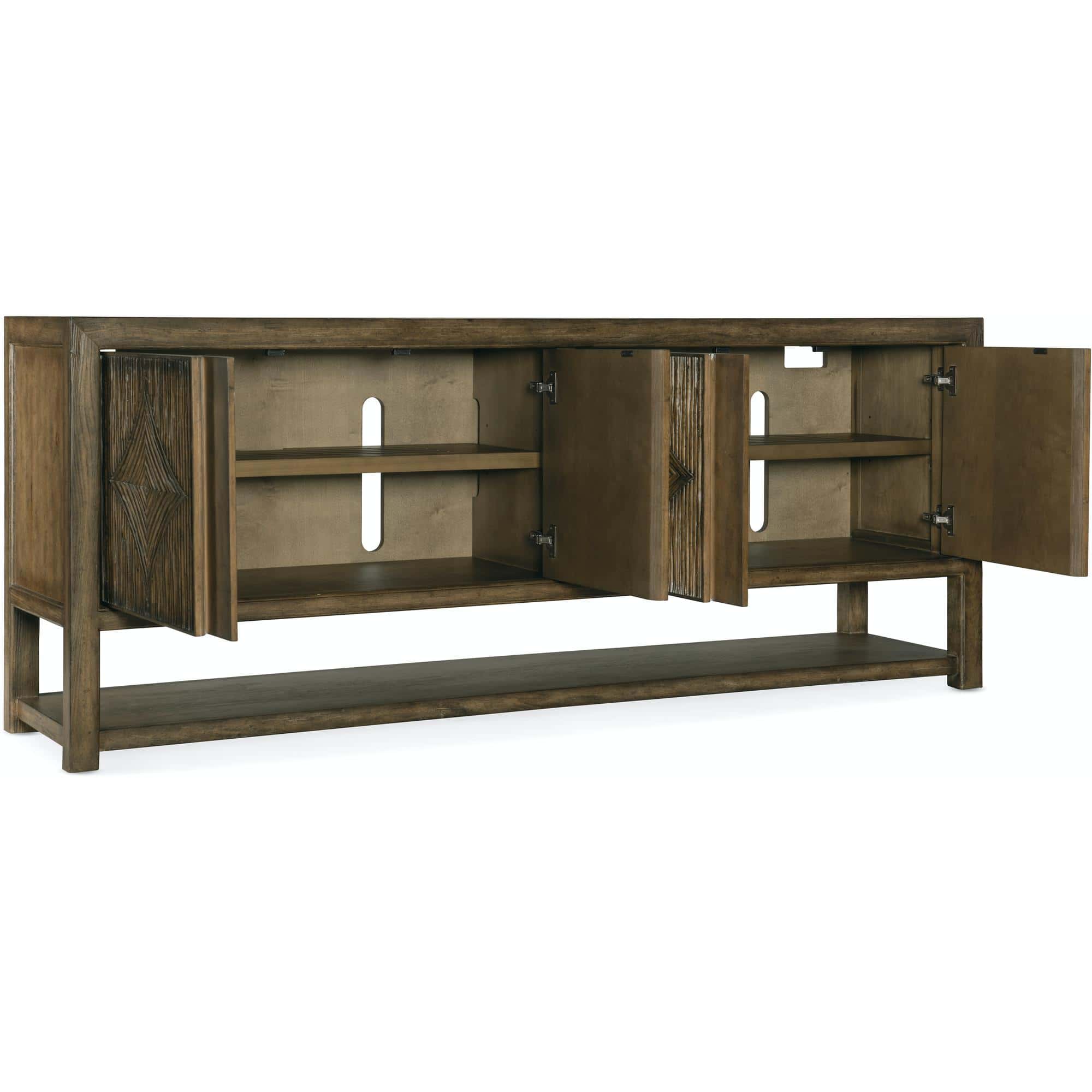Features: Four diamond motif resin front doors with soft-close hinges and touch latches