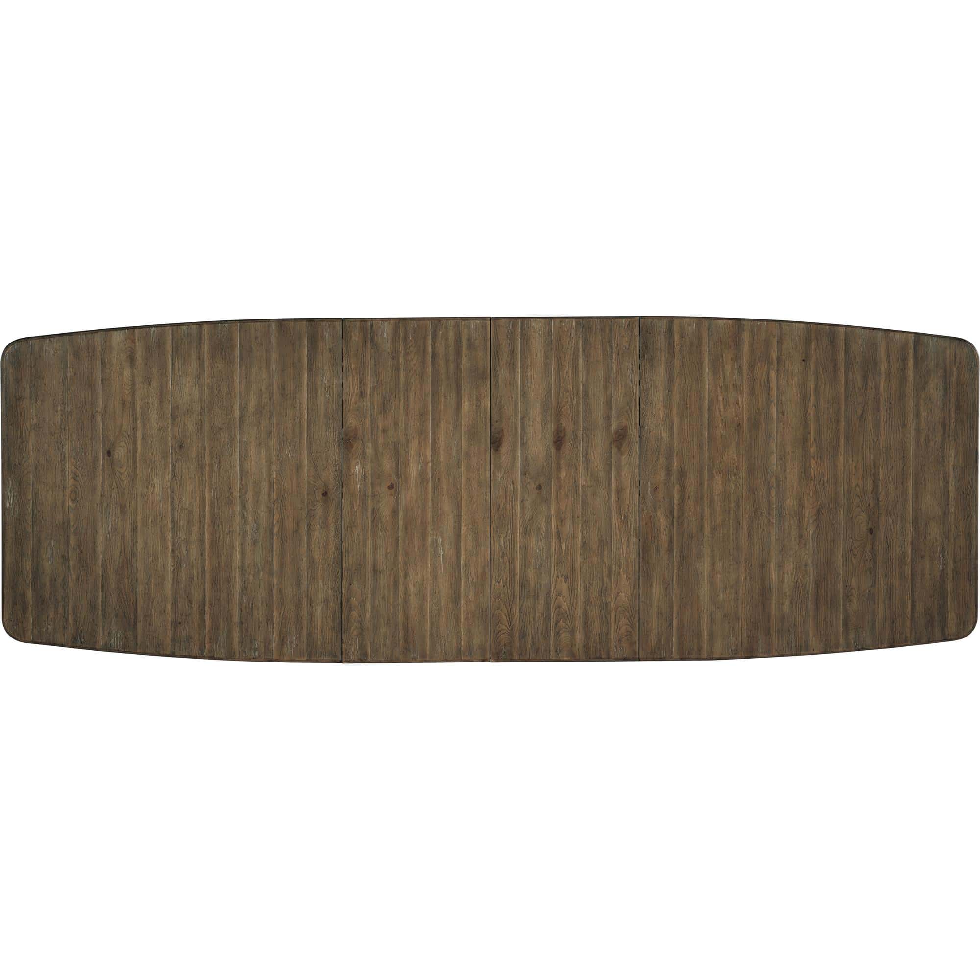 Features: Two 18-inch leaves Leaves extend table to 118-inches long Accommodates 2 arm chairs and 6 side chairs without leaves, accommodates 2 arm chairs and 6 side chairs with one leaf and accommodates 2 arm chairs and 8 side chairs with both leaves in place Levelers