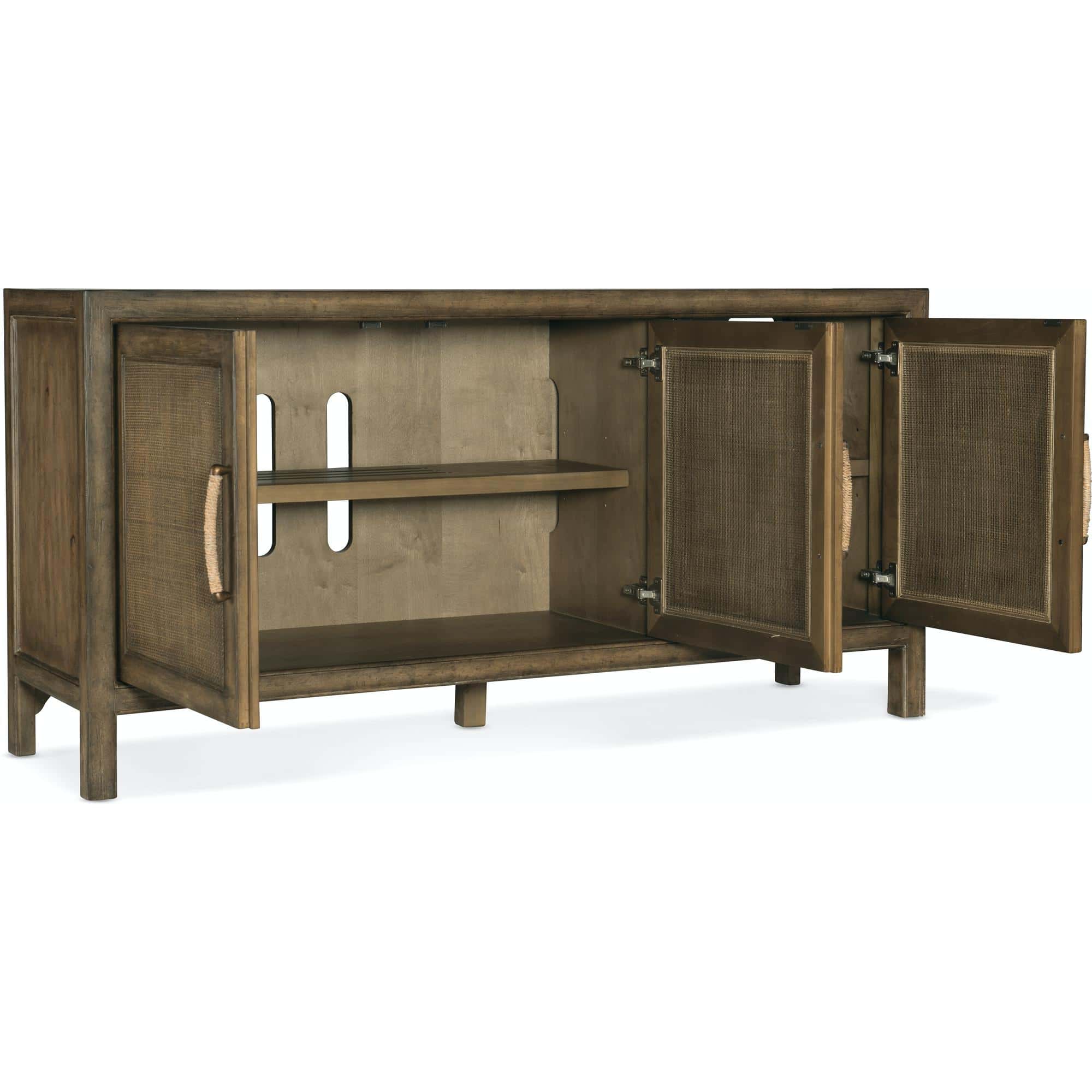 One vented adjustable shelf behind left pair of doors