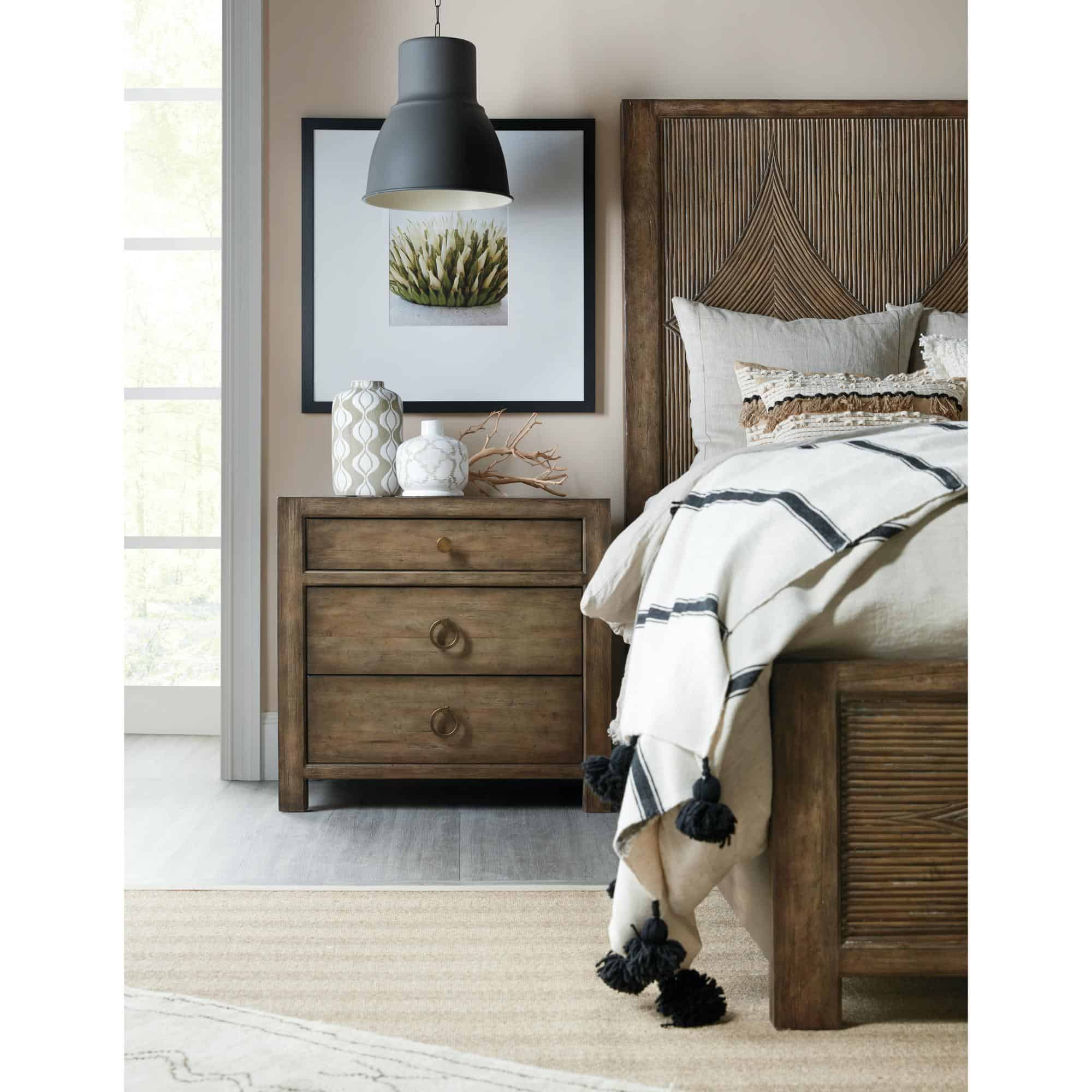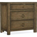 Finish: Cliffside: a rich, dynamic brown finish with light burnishing on the edges. Distressing includes sandblasting, drawknife and wormholes. Antique bronze ring and knob pulls.