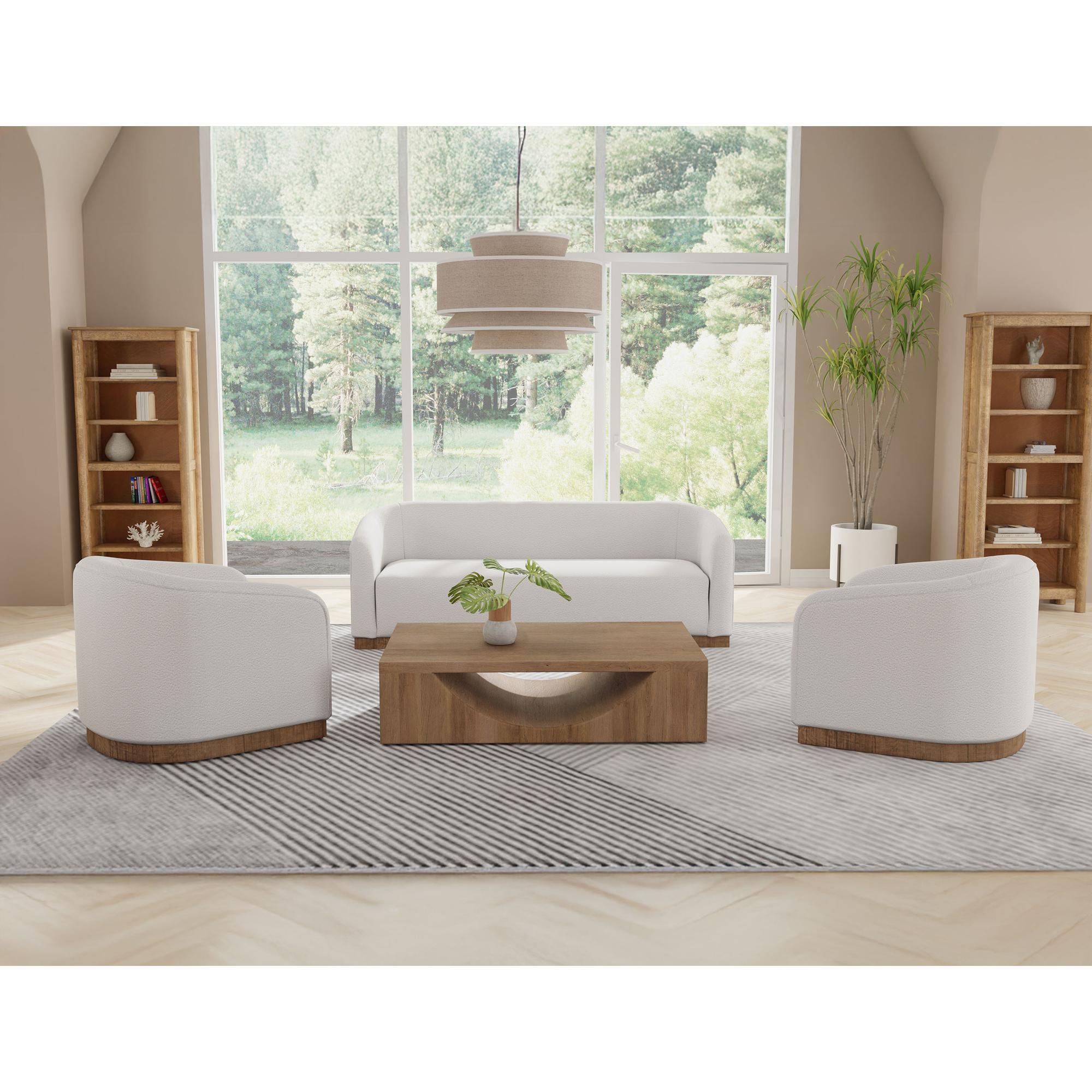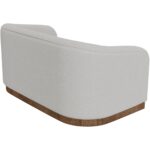 The Suomi Collection, distinguished by its flowing form, embodies the Zen-inspired Japandi style. This loveseat minimalist design is harmoniously complemented by its wooden base crafted from pine wood, with its wraparound back seamlessly merging into rounded arms, creating a cradle for an exceptionally thick and comfortable cushioned seat