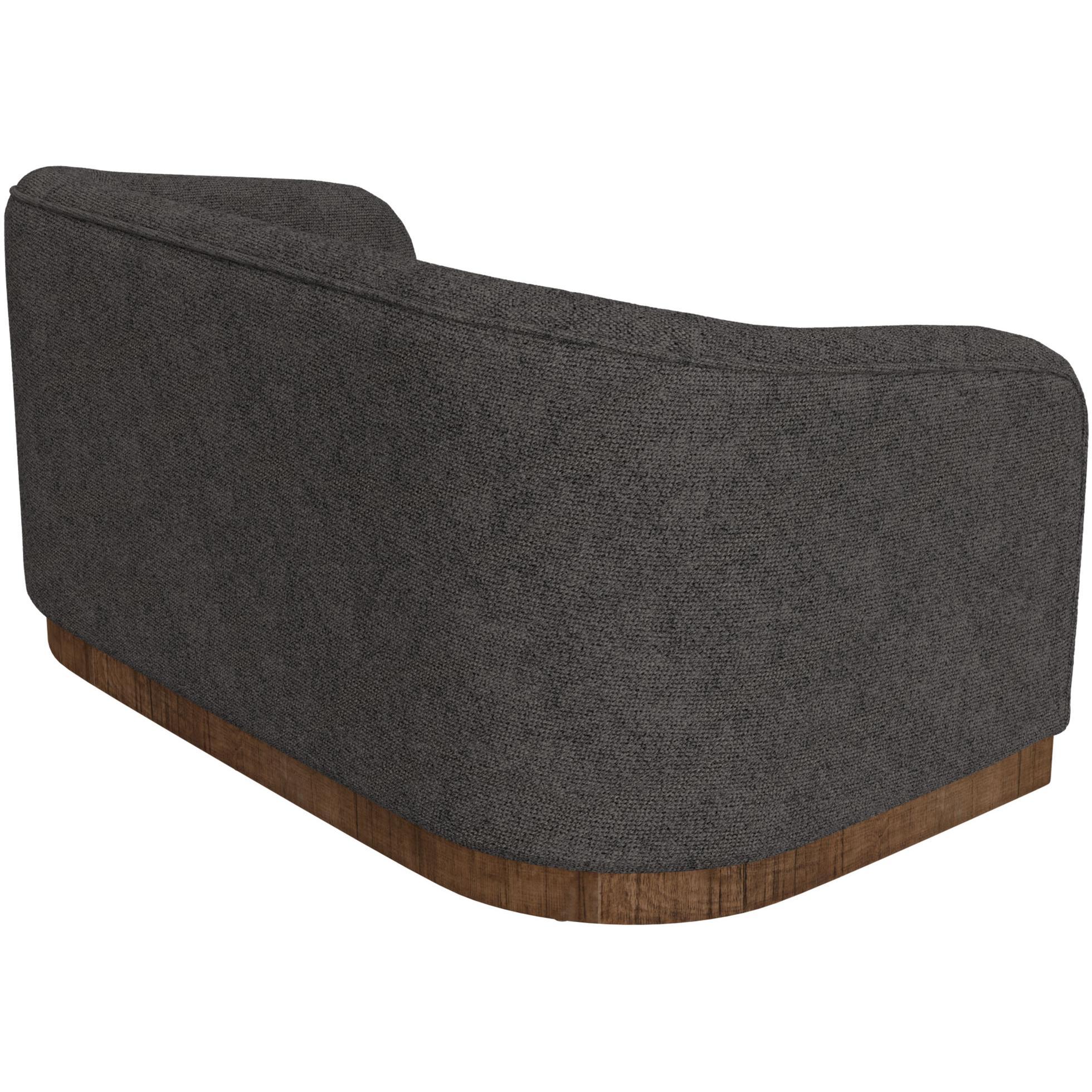 The Suomi Collection, distinguished by its flowing form, embodies the Zen-inspired Japandi style. This loveseat minimalist design is harmoniously complemented by its wooden base crafted from pine wood, with its wraparound back seamlessly merging into rounded arms, creating a cradle for an exceptionally thick and comfortable cushioned seat