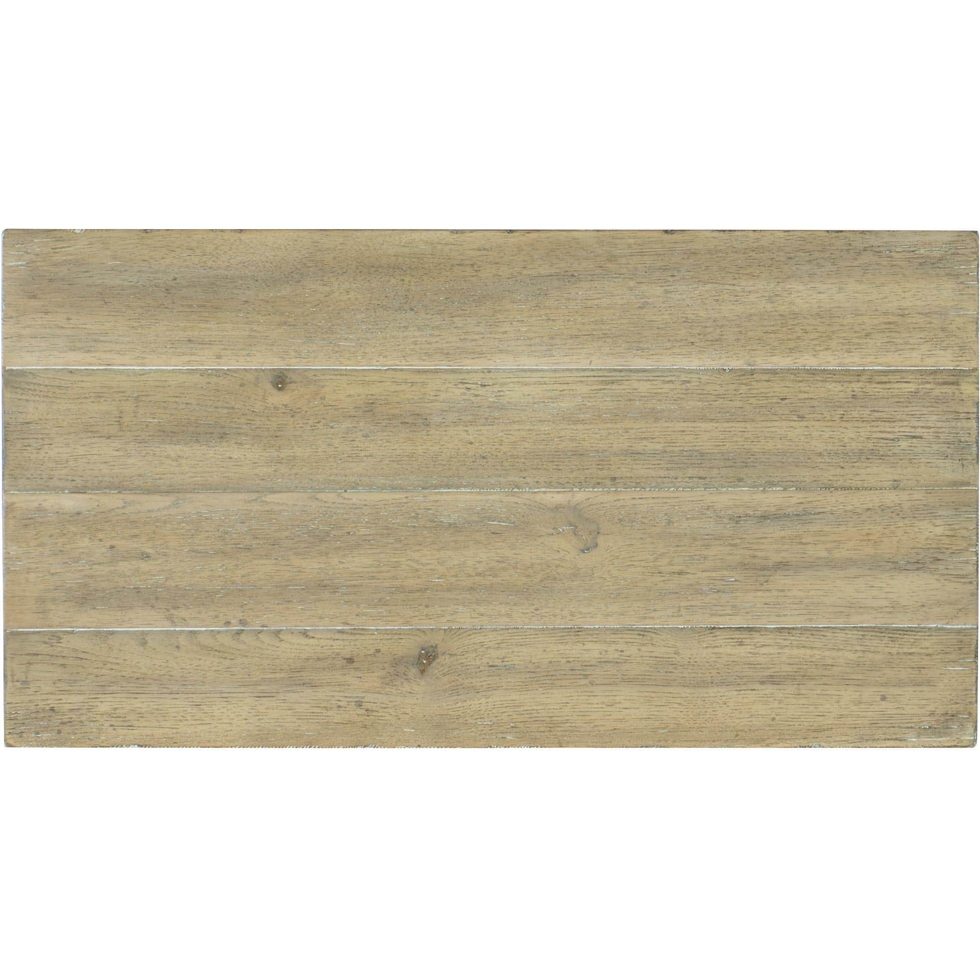 Driftwood: a light, natural finish. Distressing includes sandblasting, bleaching, drawknife and wormholes. Silver colored ring and knob pulls.