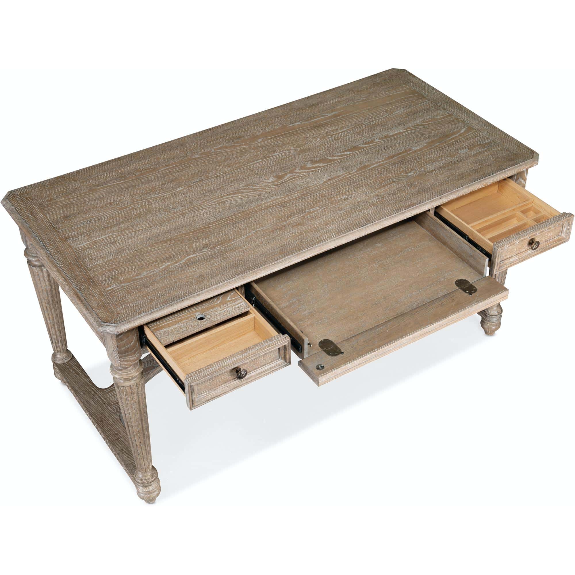 Left and right drawers have a removable pencil tray and a writing slide that can be used in either drawer
