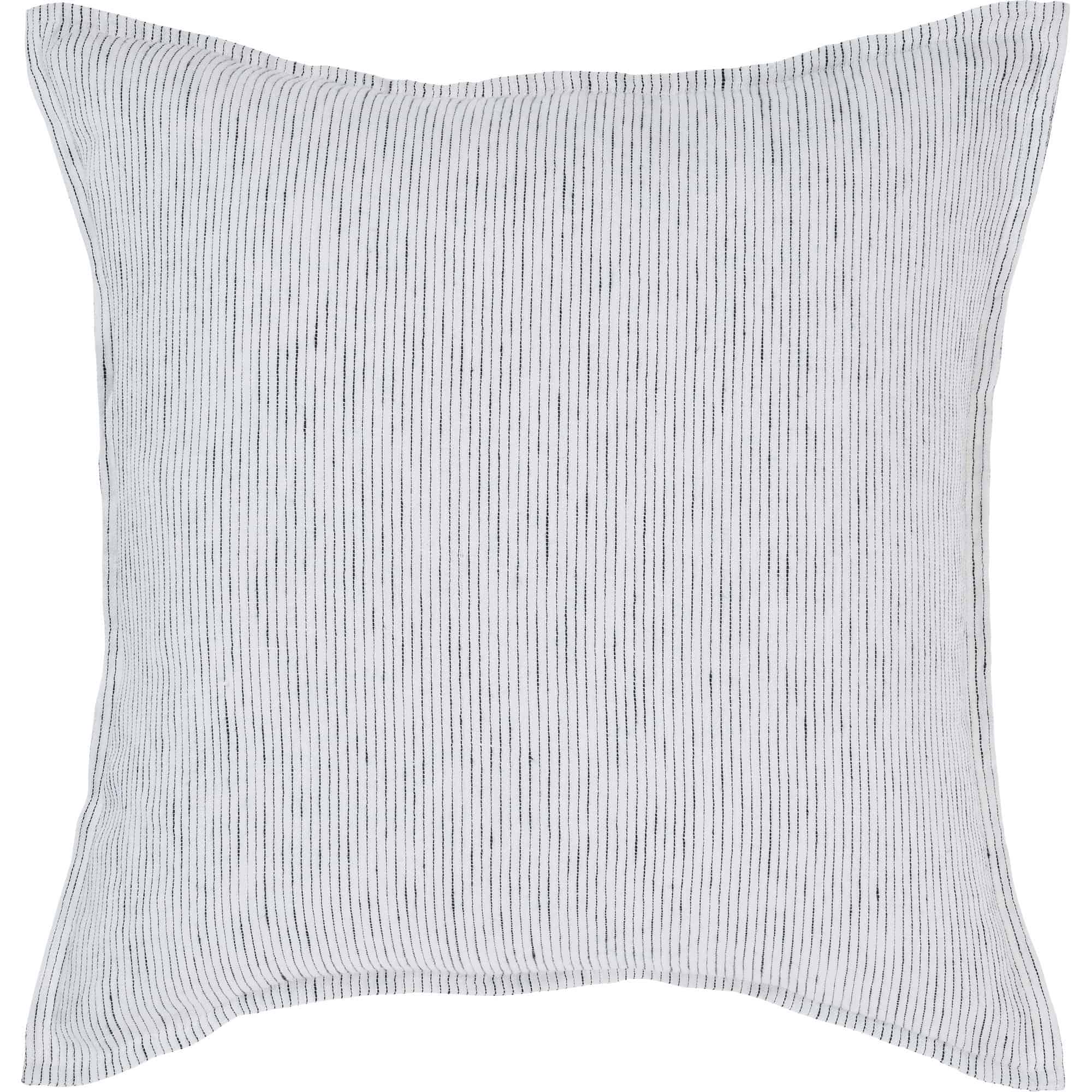 Linen’s crisp impact takes center stage in this throw pillow design. An idyllic choice to complement patterned pieces, its herringbone stripe brings subtle detail that doesn’t overwhelm the eyes. With a 20 by 20-inch structure and feather-down filling, it holds utility for relaxation in addition to aesthetics.