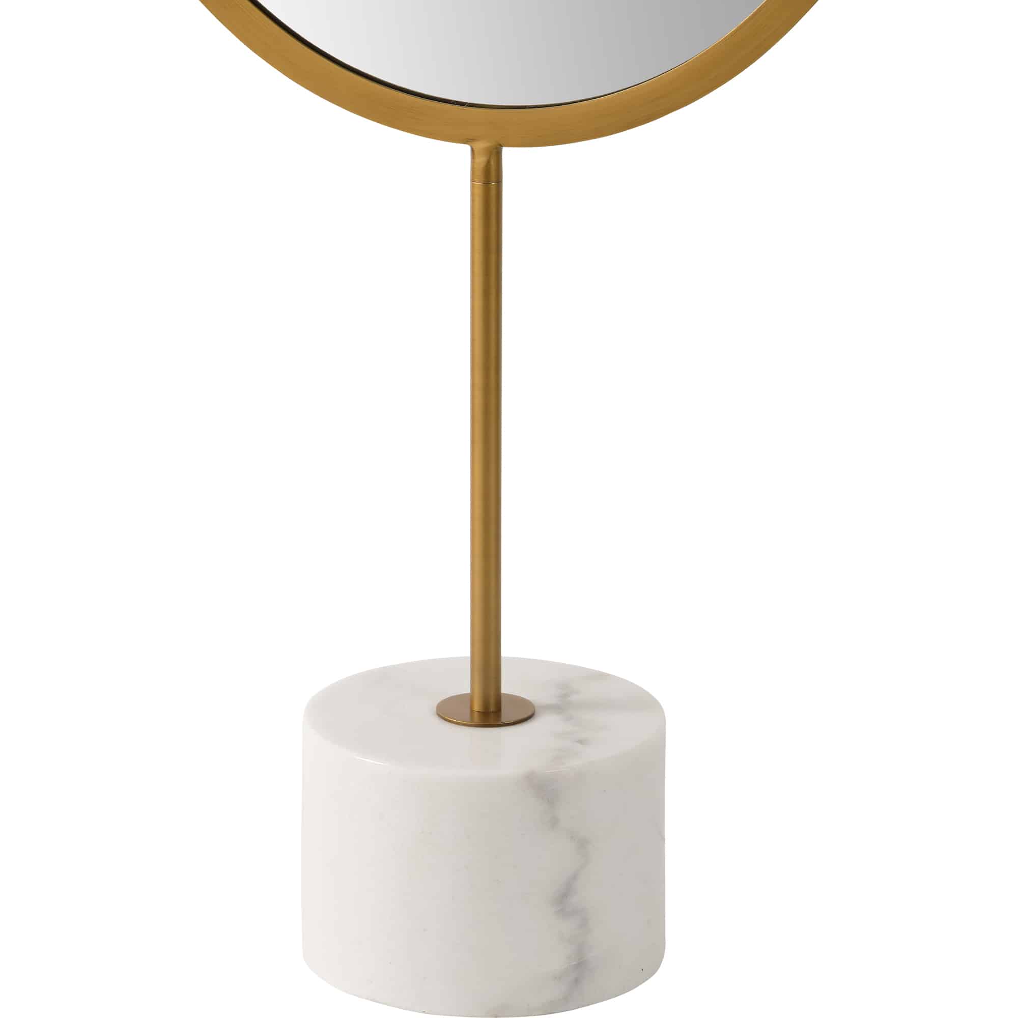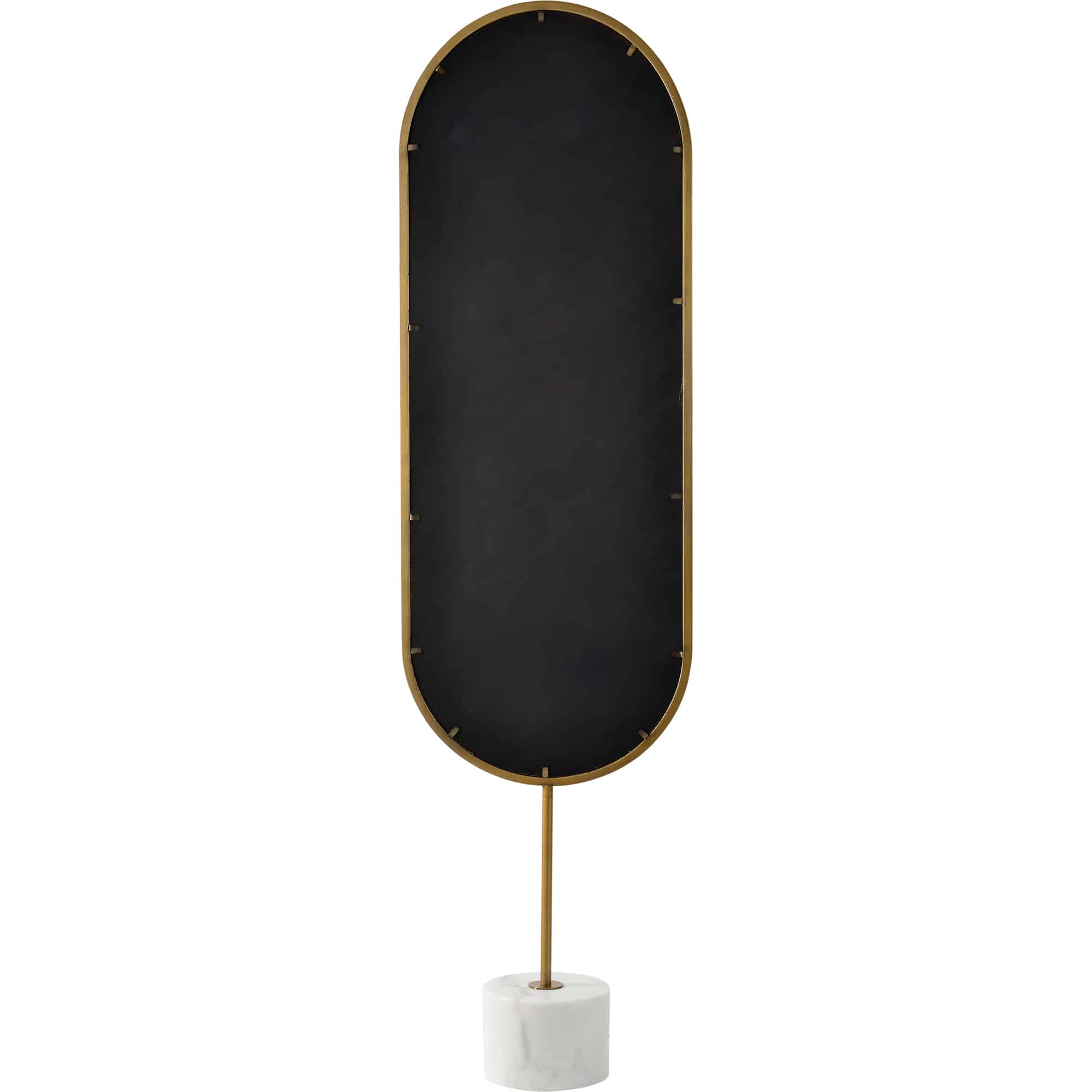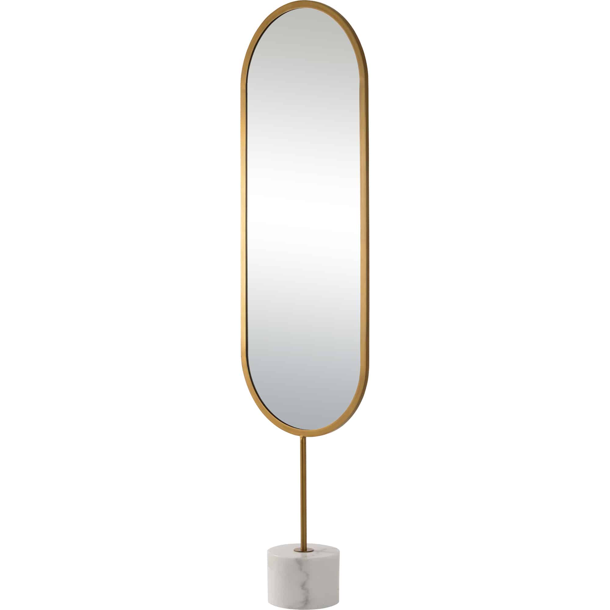 A marriage of luxury and minimalist design, this floor length mirror is inherently radiant. Set in the contemporary bedroom, this piece brings an upscale quality to the space. Featuring a marble base and an antique brass finished frame, it holds an ideal mix of old and new inspirations.