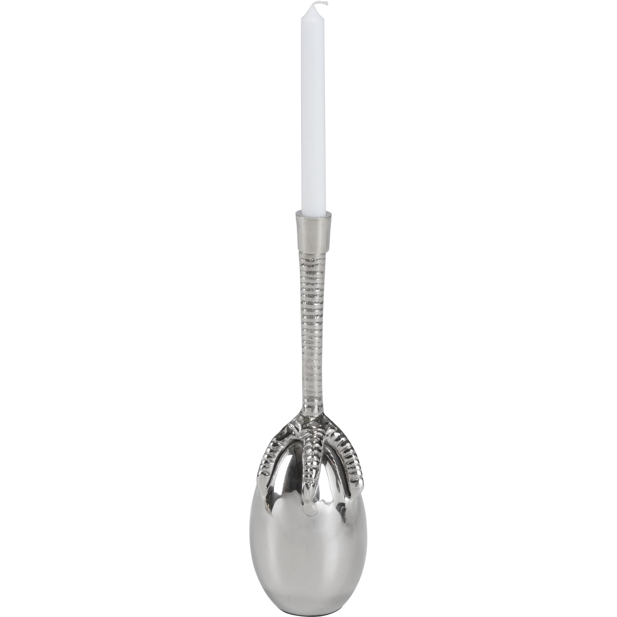 Reminiscent of the claw foot furnishings of the 18th century, talon candleholder features a modern interpretation of the classic “claw and ball” design. Crafted of nickel plated cast brass, this tall and taloned candleholder will shine on tabletops in an entryway, living area or office. (Candle not included)