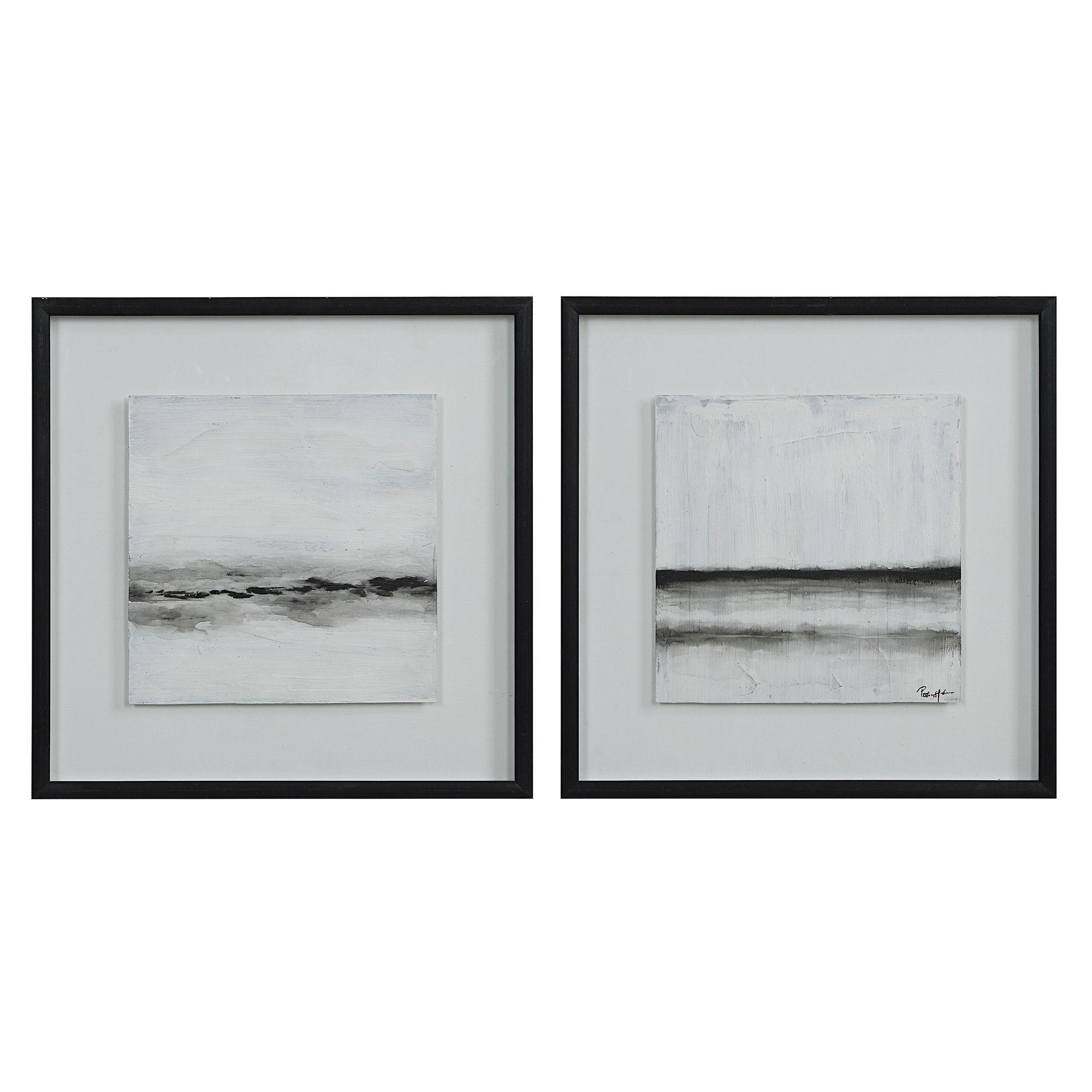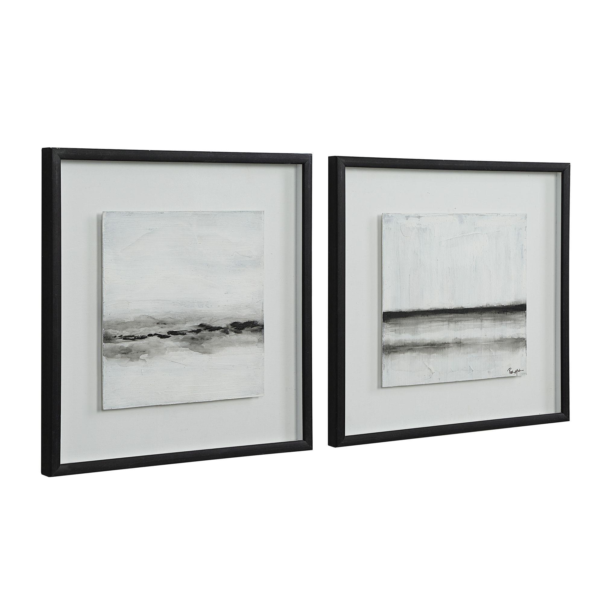 Loaded with texture and painted in on-trend neutral tones, this artfully crafted pair of abstract landscape art will deliver a calming vibe in any home or office. Mounted with a floating effect in high-quality black frames, this duo of paintings is set to elevate your decorating scheme.