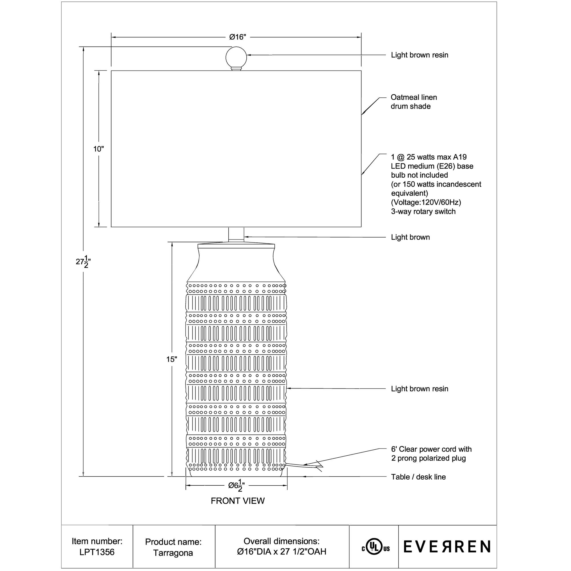 Check all the boxes on your neutral decorating scheme’s must-have list with the Tarragona table lamp. Featuring loads of texture, its patterned body joins forces with a cream linen drum shade to create a tonal masterpiece worthy of any modern or traditional setting. Place one or a pair in the room of your choice for an instant update.