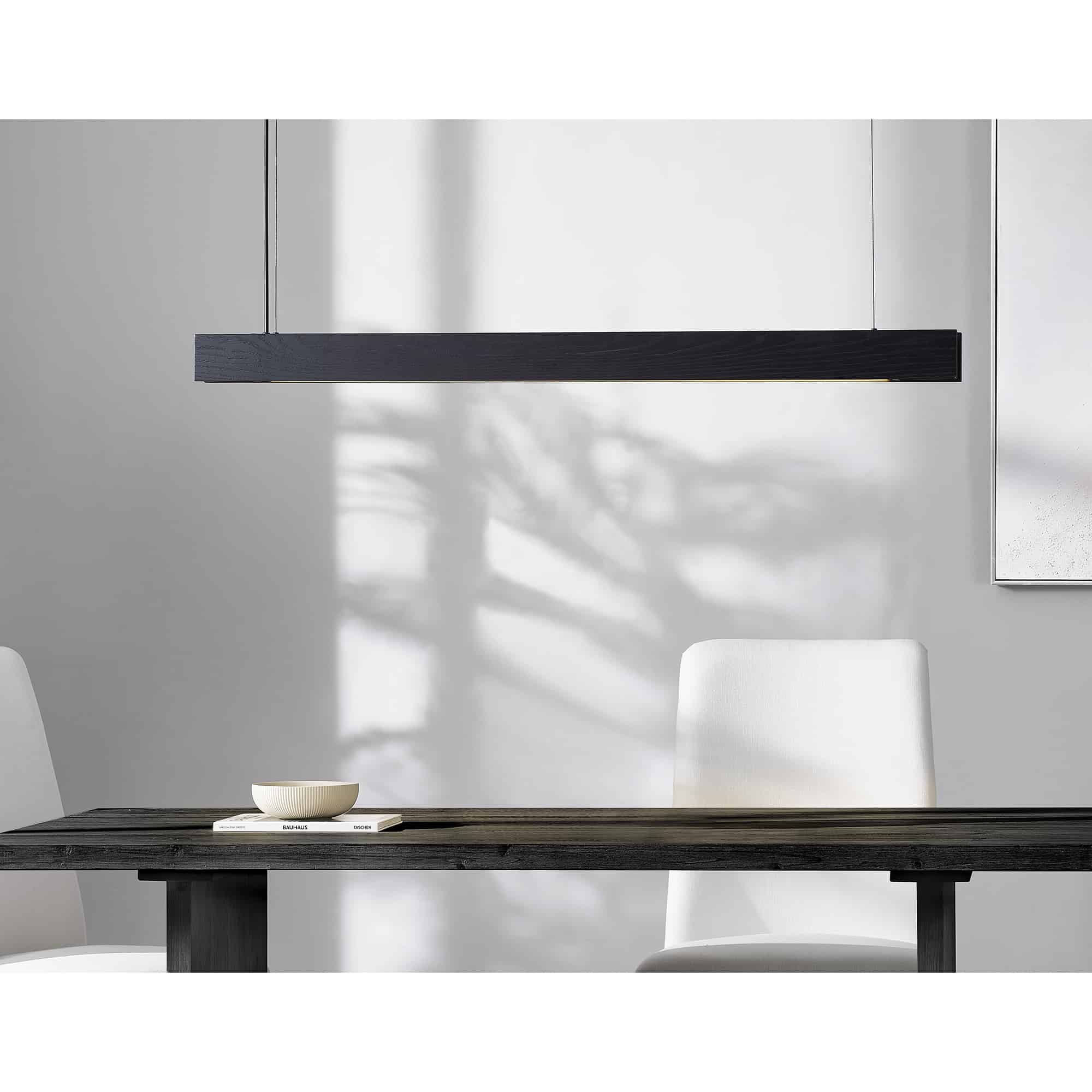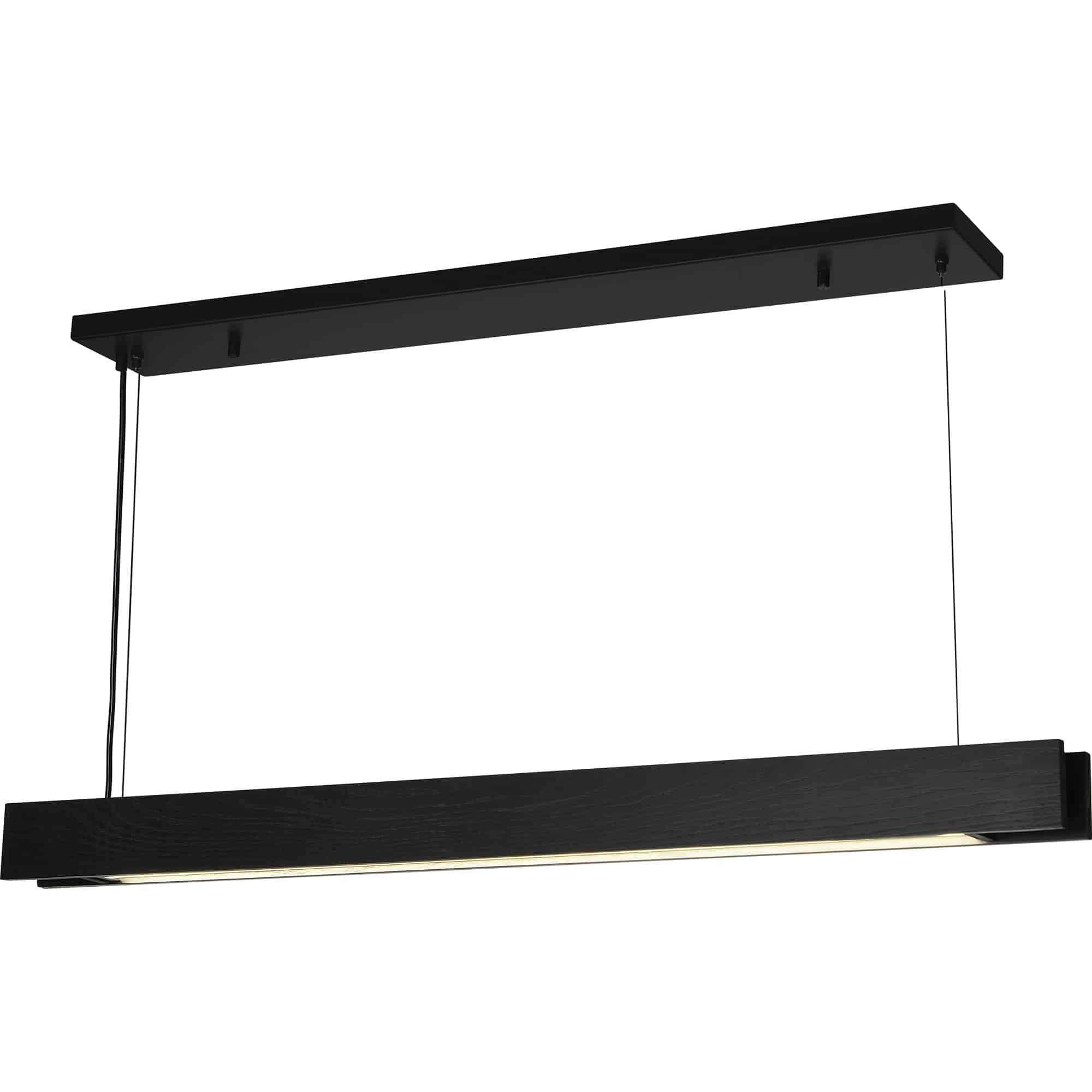 A warmth envelops the industrial interior when this LED ceiling fixture enters the space. At 48 inches in width, three in height and two in depth, it can be styled solo or with multiples arranged in sequence. The matte black body and canopy hold a stylish simplicity that catches the eye as soon as one enters the room.