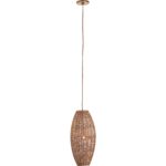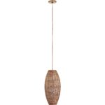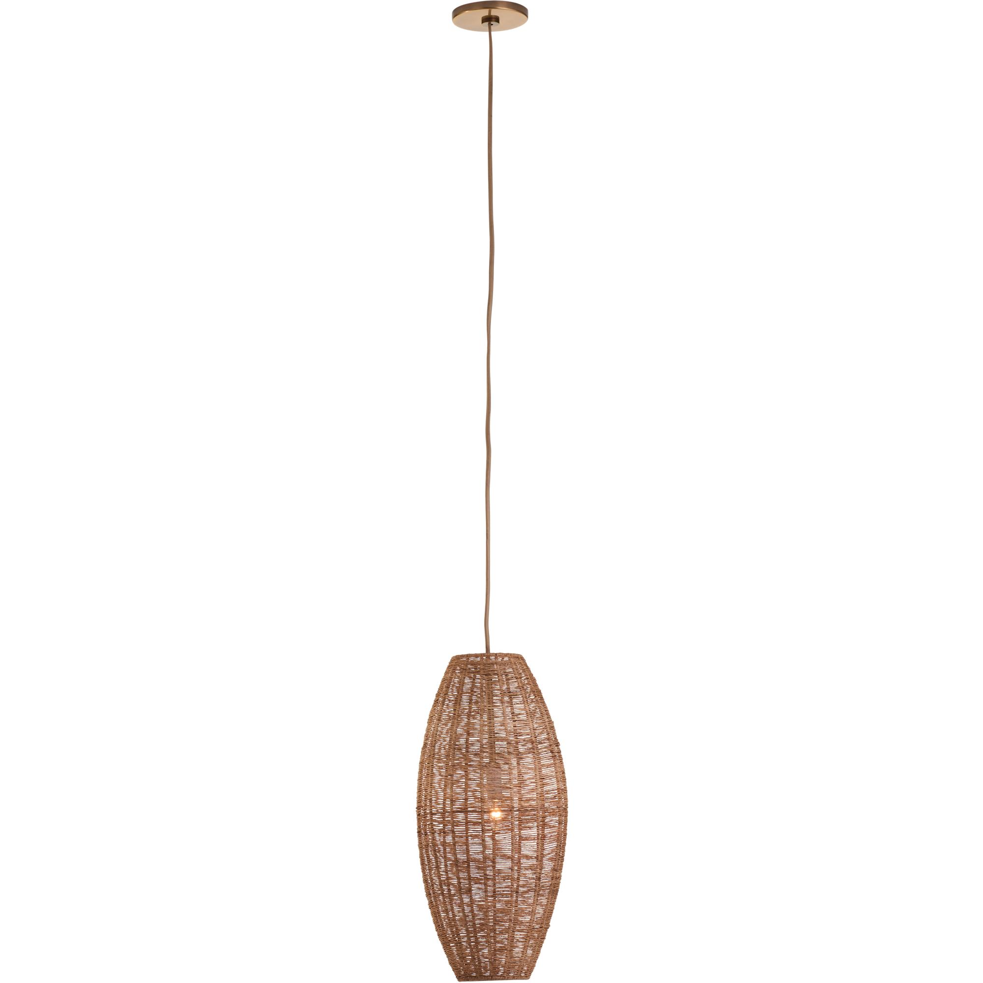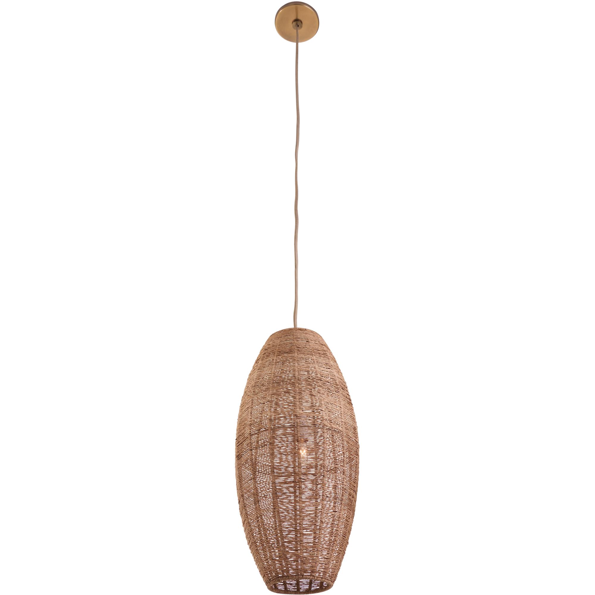 The Teague Single Pendant – Tall showcases a sleek, elongated silhouette crafted from handwoven raffia rope, adding natural texture and warmth to any space. Designed to emit a soft, inviting glow, this pendant brings an organic elegance to any space.