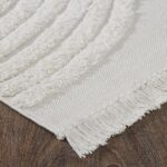 A carefree quality envelops the interior through this rug design. The arching rainbow-like details and fringe edge of this cotton rug lend a welcoming quality to any room it’s set within. Well-suited for a mid-century modern space, this rug is at its best when paired with neutral accessories and furnishings.