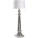 Inspired by the tuscan order columns designed by the romans during the renaissance, this classic floor lamp will bring beauty and function into your home. The simple design is crafted of steel with a polished nickel finish that complements any decorative style. A white linen drum shade provides balance to the design while diffusing light throughout the room.