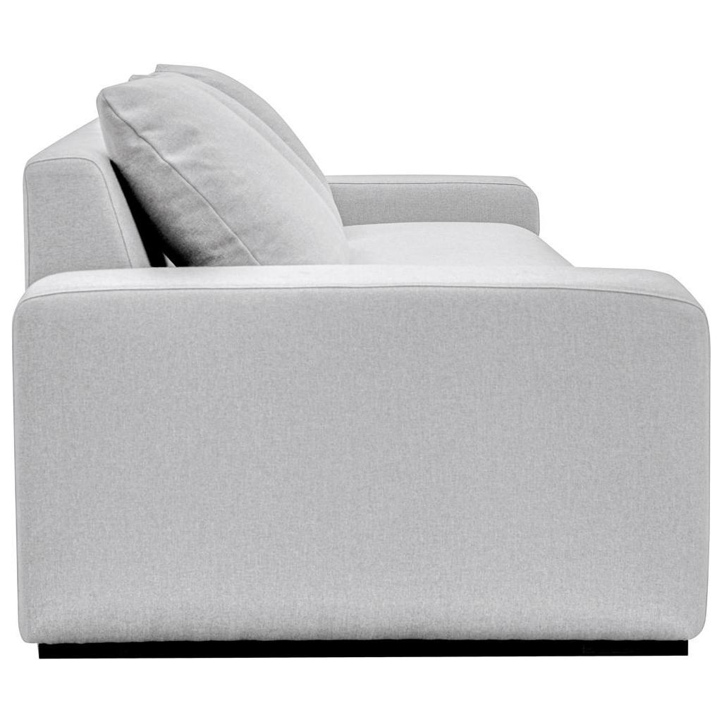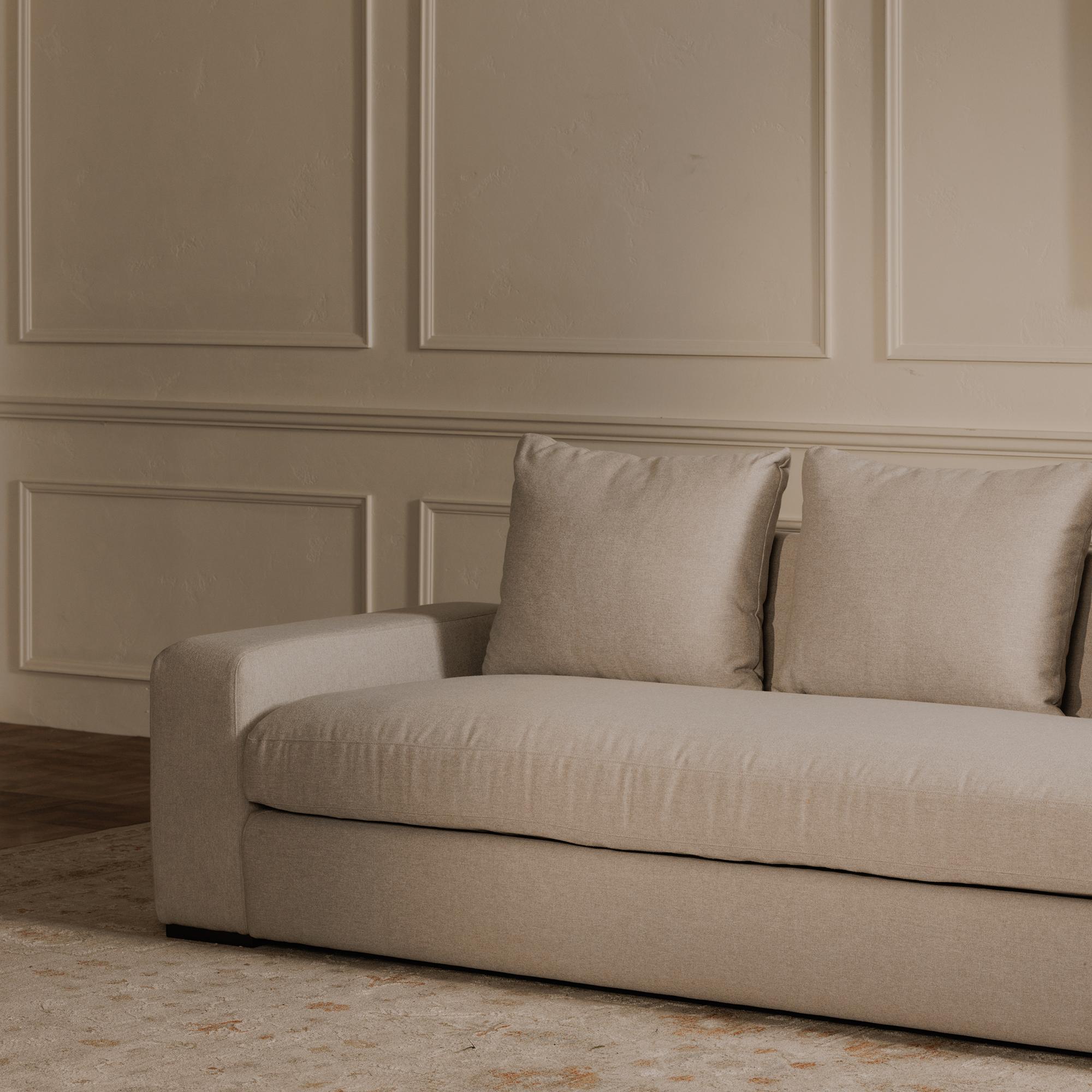 The Thomas sofa offers comfortable seating in durable C0 100% polyester fabric. An oversized structure, wide track arm, and bench-style seat topped with a 70% feather blend ensure even comfort. Featuring removable back cushions and even channeling within the seat to ensure its feathers stay evenly distributed, it is perfect for family living.