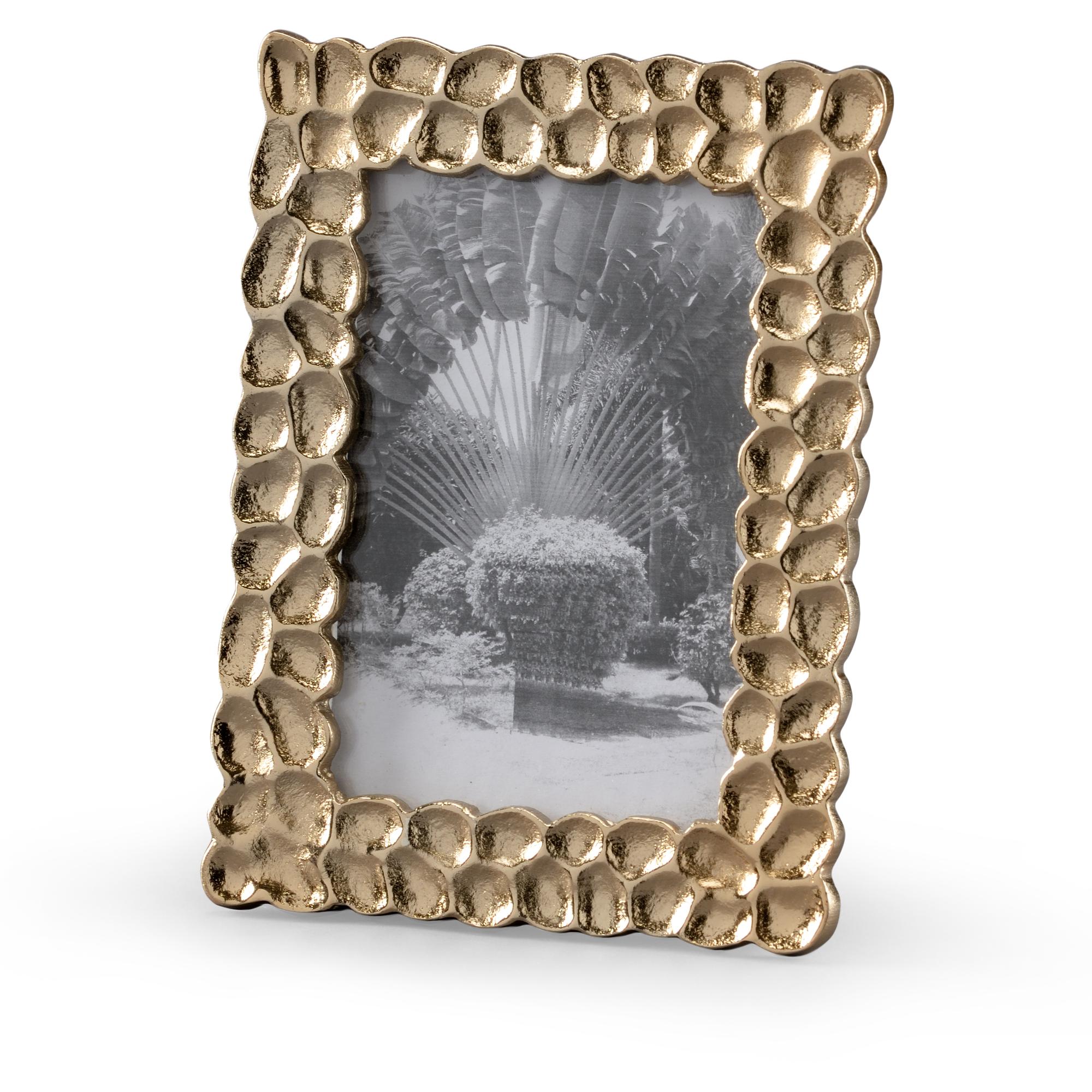 Enhance your photo gallery with this 4×6 frame that complements any decorative style. Thumbprints photo frame is crafted in cast aluminum with an ambered silver finish. Features include a clear protective glass covering and an easel for horizontal or vertical viewing. Display this exquisite 4×6 frame on a table, desk or bookcase in your home or office. Also available in 5×8.