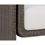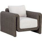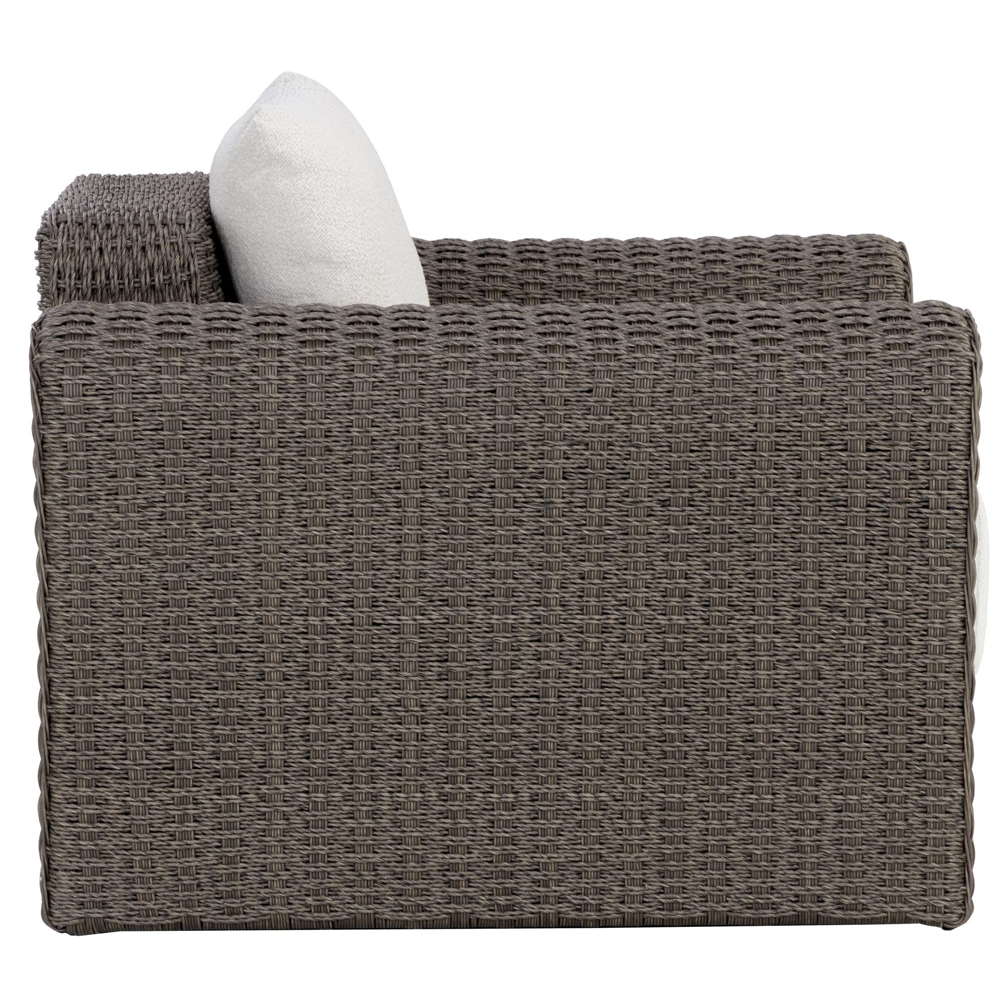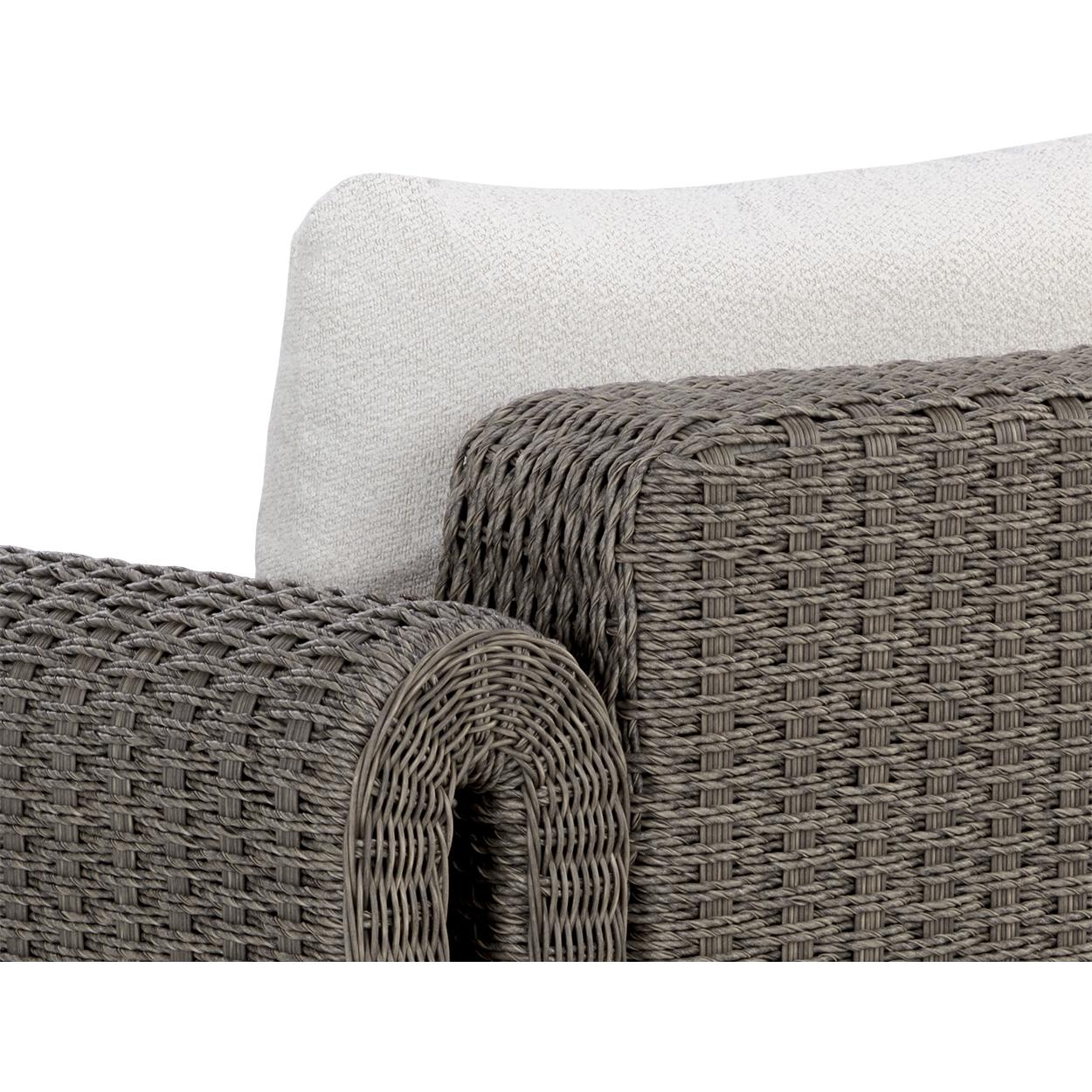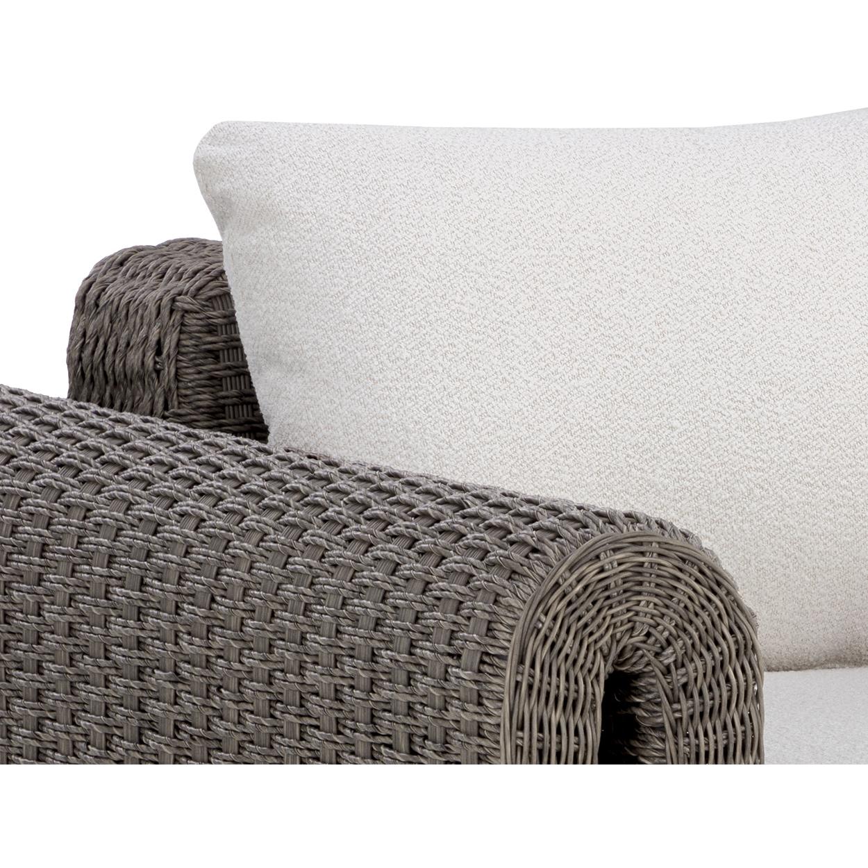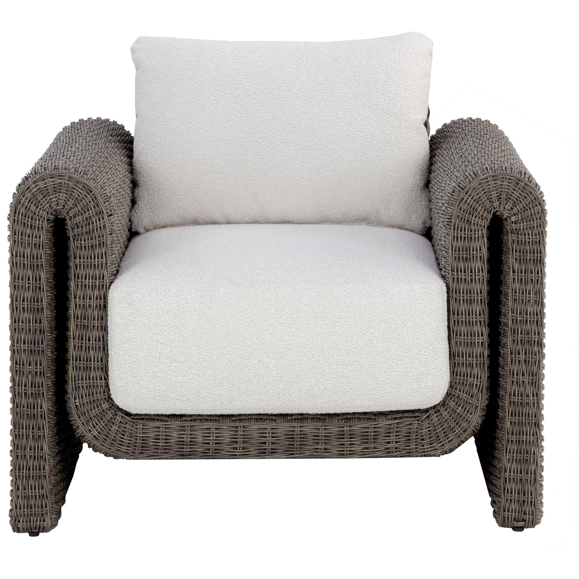 The robust proportions of the Tibi Lounge Chair enhance the textural beauty of handwoven twisted wicker. The rolled arms connect seamlessly to nestle the comfortable cushioning upholstered in our louis cream outdoor boucle performance fabric.