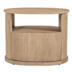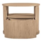 The Tommy nightstand embraces modern simplicity in a natural finish. Its distinctive racetrack capsule shape adds a contemporary touch to the bedroom, seamlessly blending form and function. This nightstand features a solid oak frame with oak veneer details, offering durability and refined style. The soft-close drawer and open shelf provide versatile storage options in a piece that speaks to modern appeal.