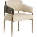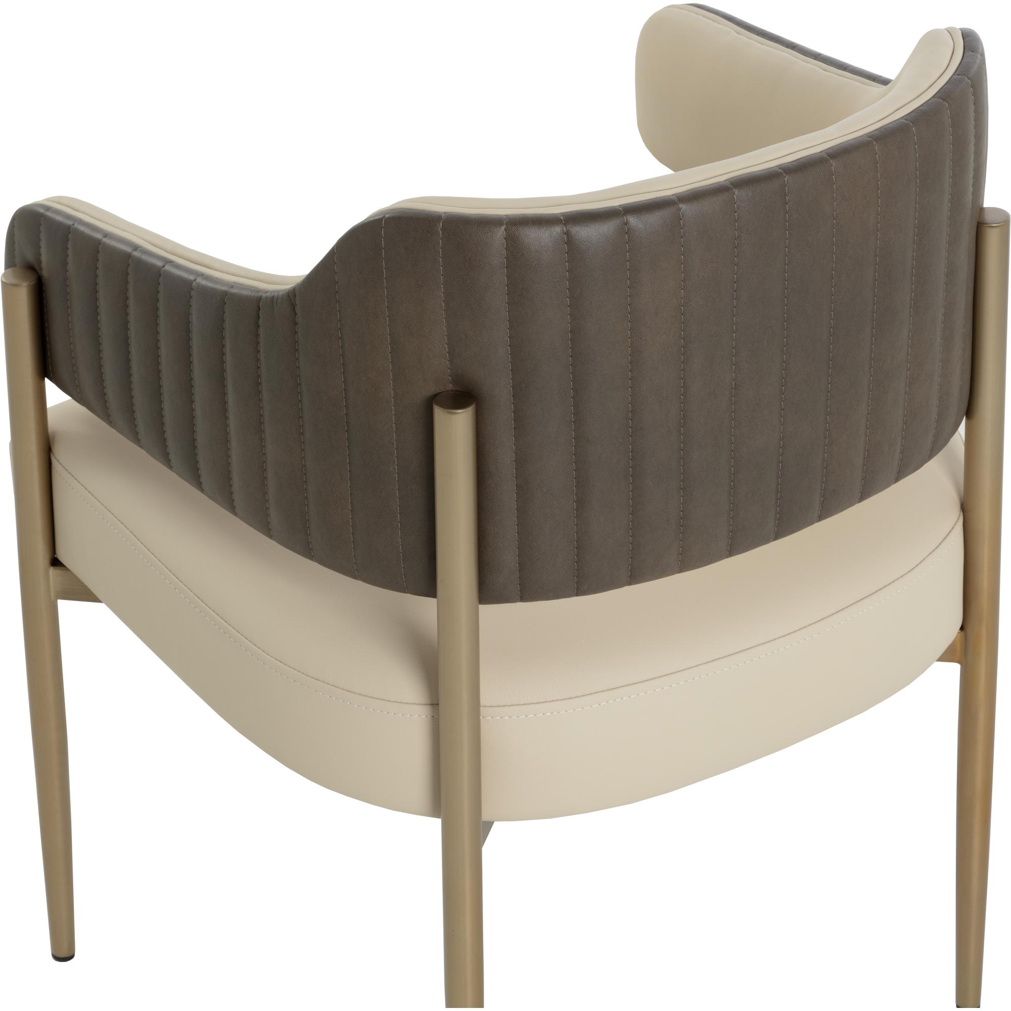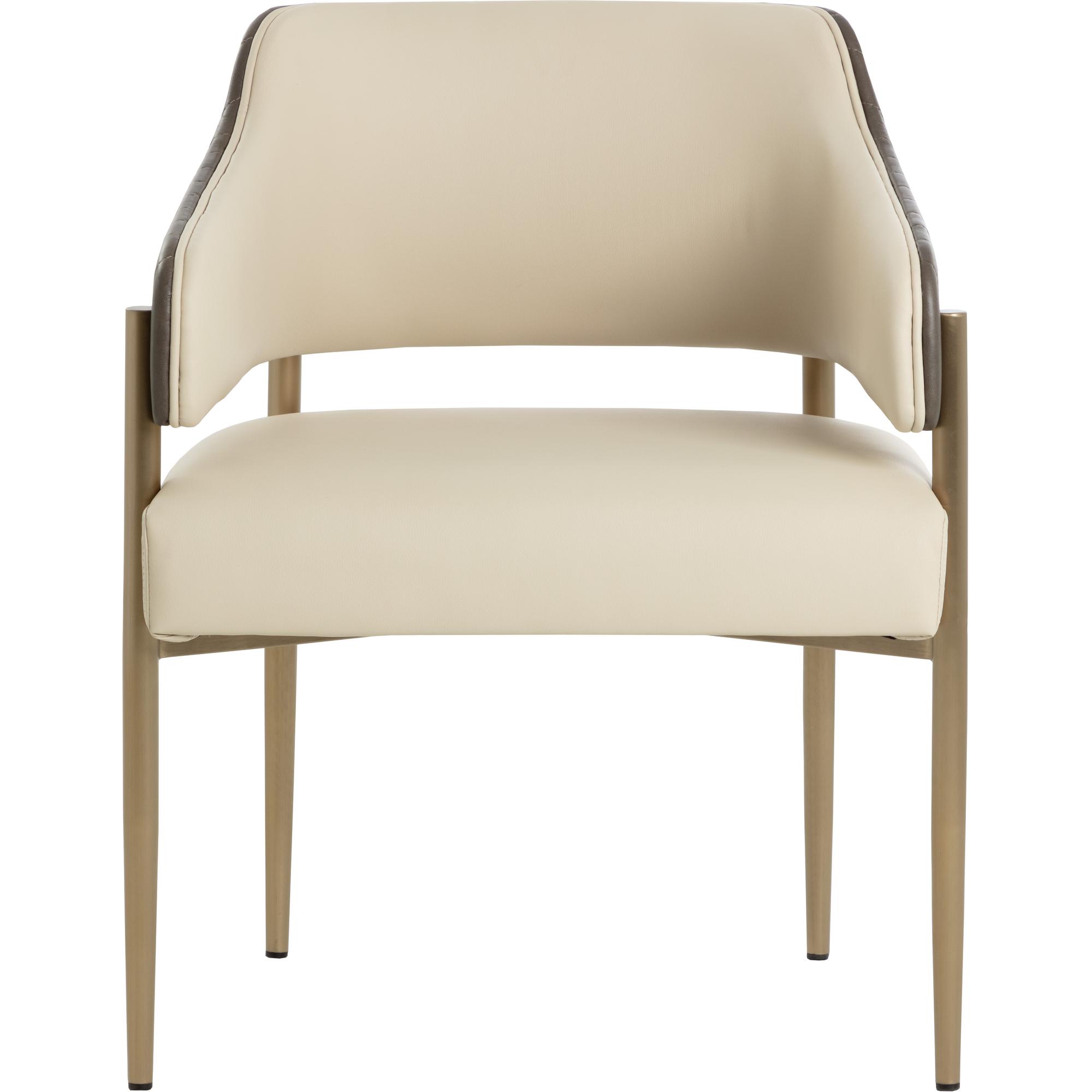 The Tova Dining Armchair is an ideal balance of comfort and contemporary design. A generously padded seat with a curved backrest creates enjoyable contours for daily dining. A combination of dillon cream and bravo ash faux leathers with powder-coated stainless steel lends enduring style.
