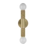 Double the illumination in any interior with the Tovi 2-light wall sconce. Crafted from high-quality burnished brass-plated iron, it has a rich and luxe look that complements many styles of decor. With two ways to hang it, try one vertically over a mirror or pair up a duo to flank a prized painting over a buffet to create instant drama in a dining room. The only limit to the placement of this beautifully modern light fixture is your imagination. Hardwiring keeps wires behind the scenes so there are no unsightly cords getting between this stunning light wall sconce and the perfect ambient light it sheds throughout the room.