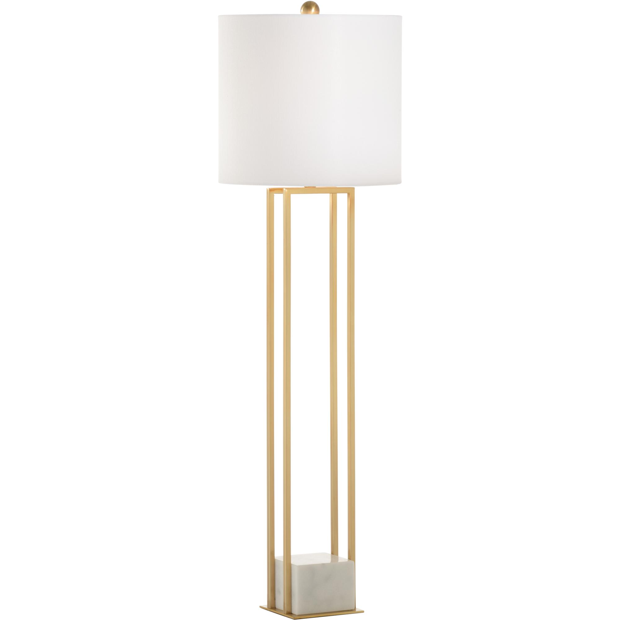 Brass finished lamp with natural marble accent block.