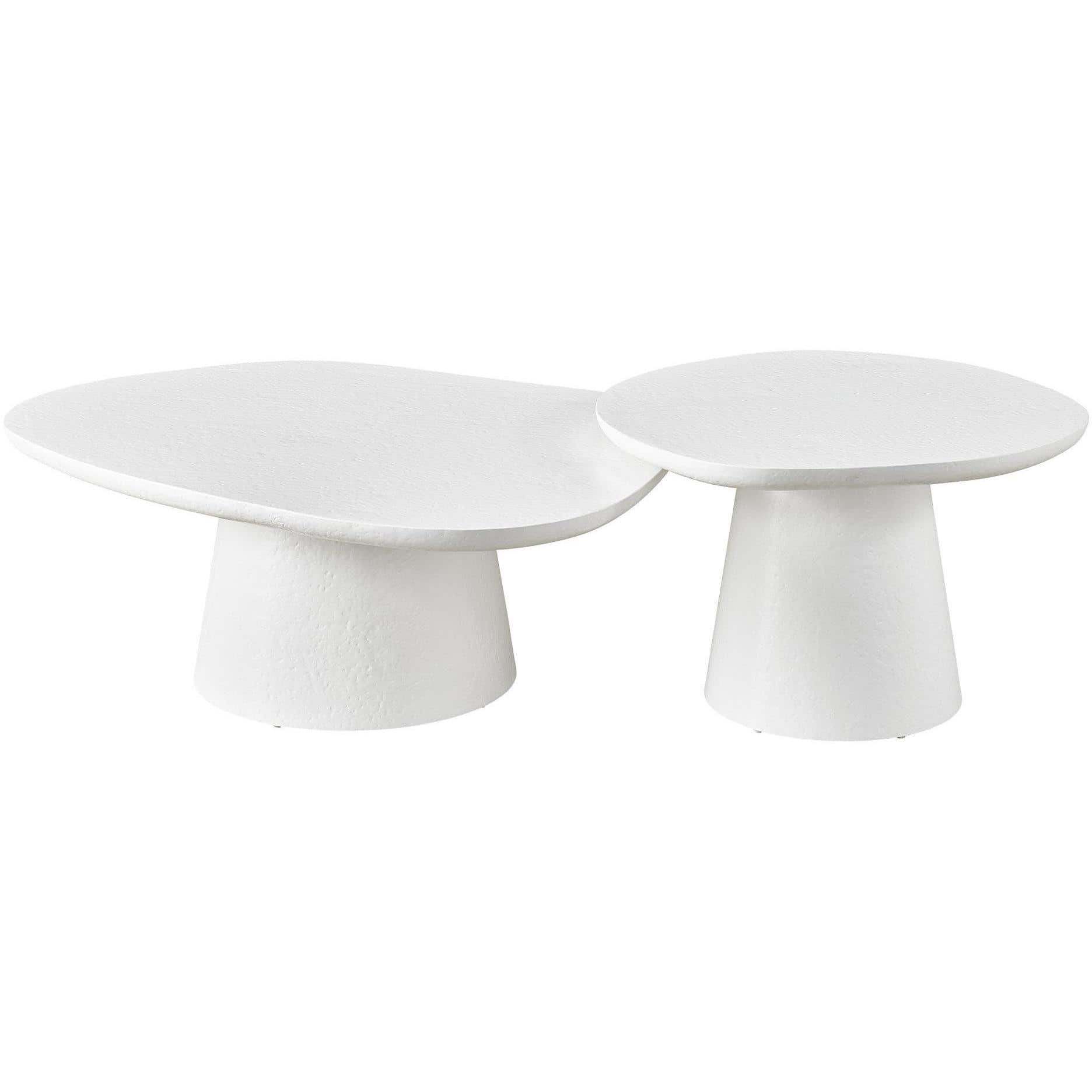 The Tranquility Nesting Cocktail Table captures a dreamy essence with two uniquely-shaped tables of varying height finished in a subtly textured white hue.