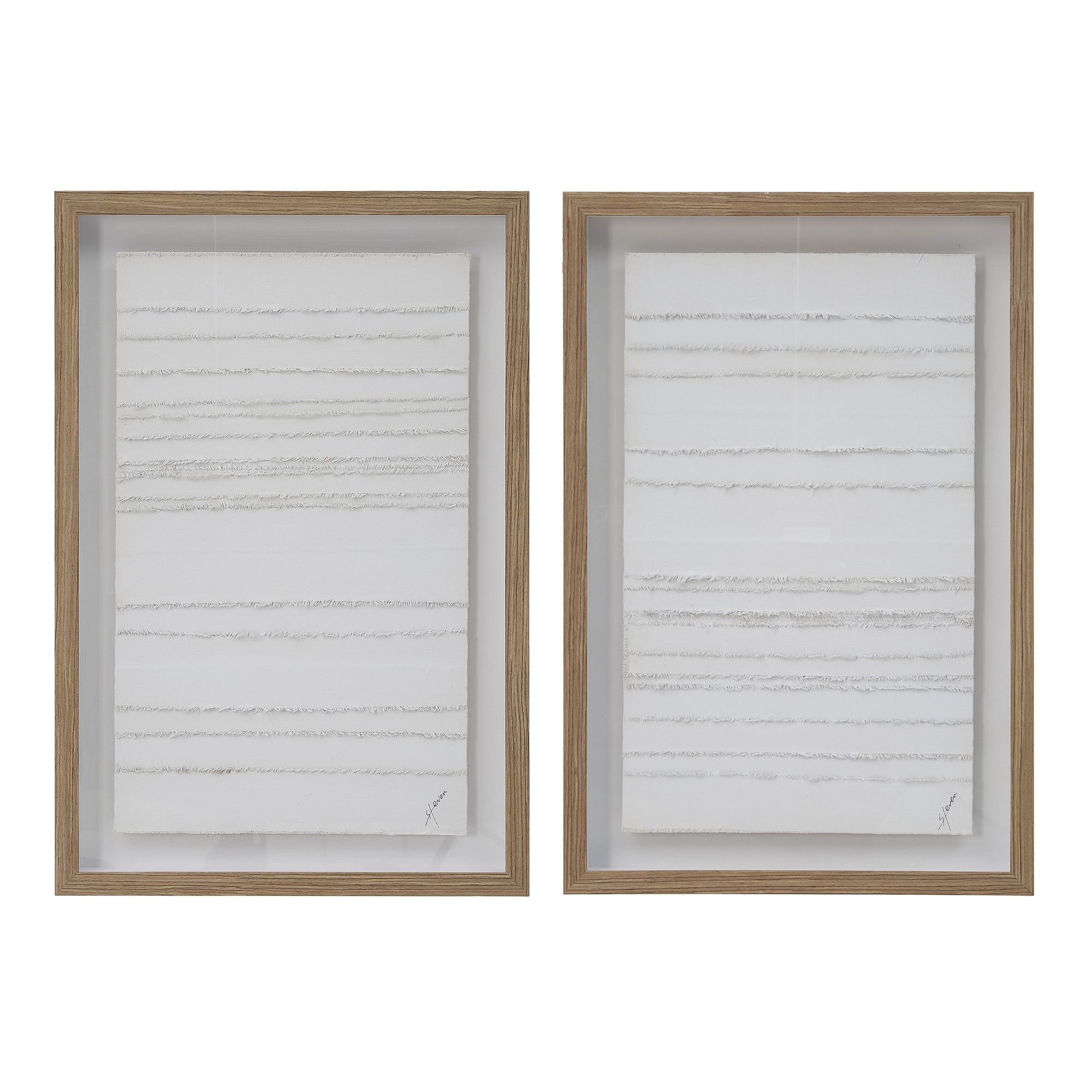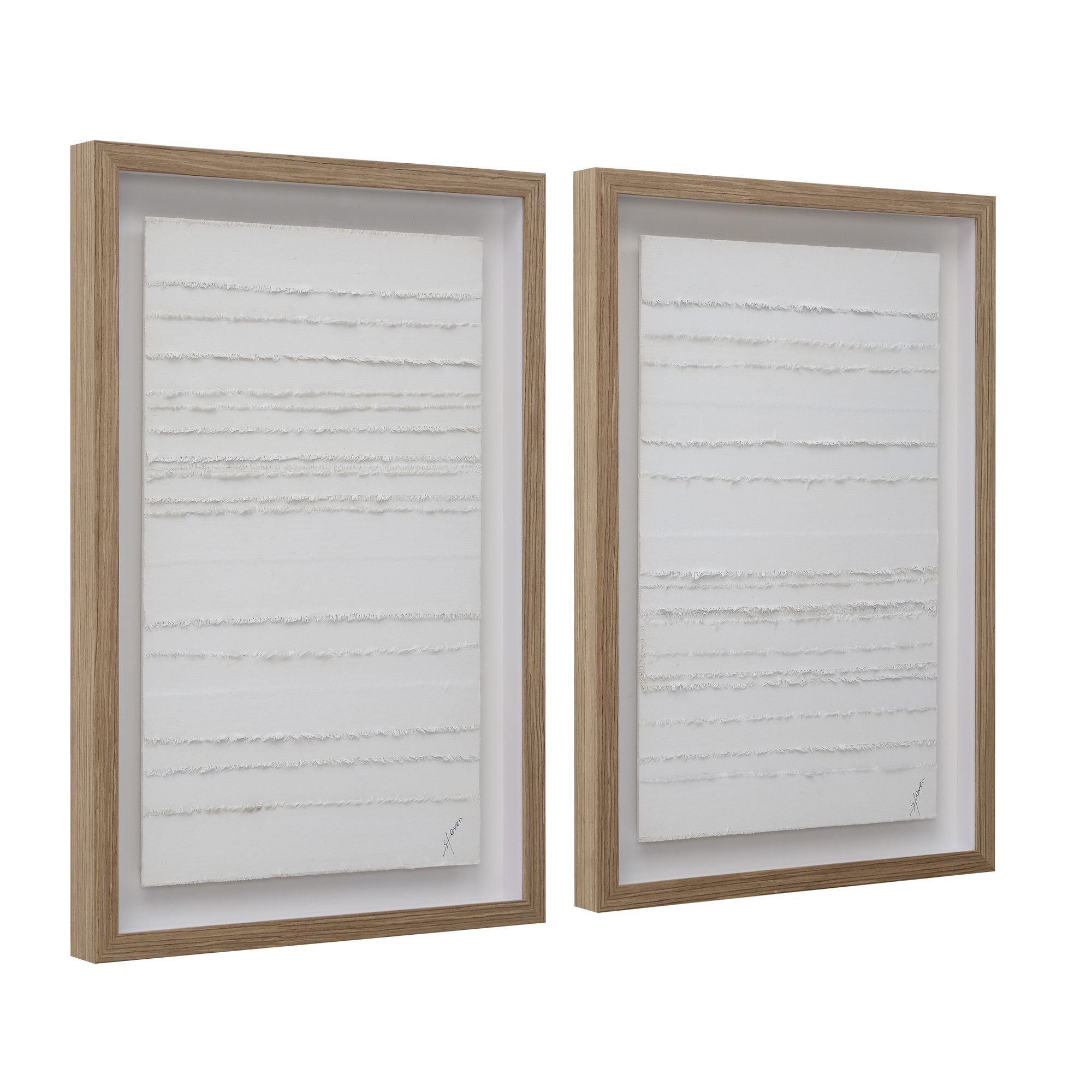 High style is a wrap when you have this unique wall art set from Canadian television host, artist and designer, Steven Sabados as part of your decorating plans. Each canvas is artistically wrapped with cotton strips, creating a textured base for its hand-painted finish. Encased under glass in a beautiful walnut shadowbox, it’s perfect for putting the final touch on any room.