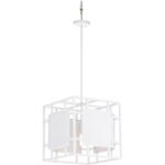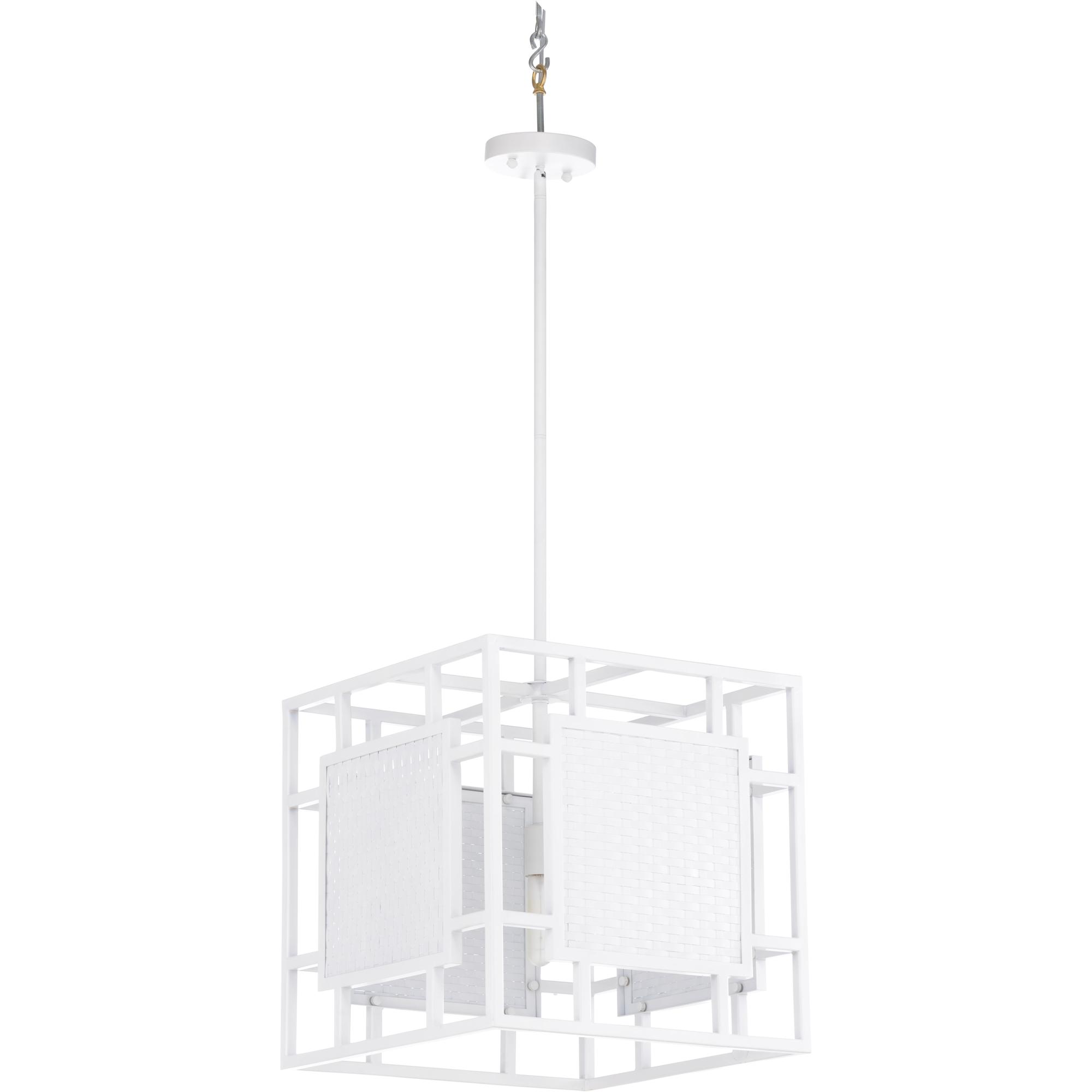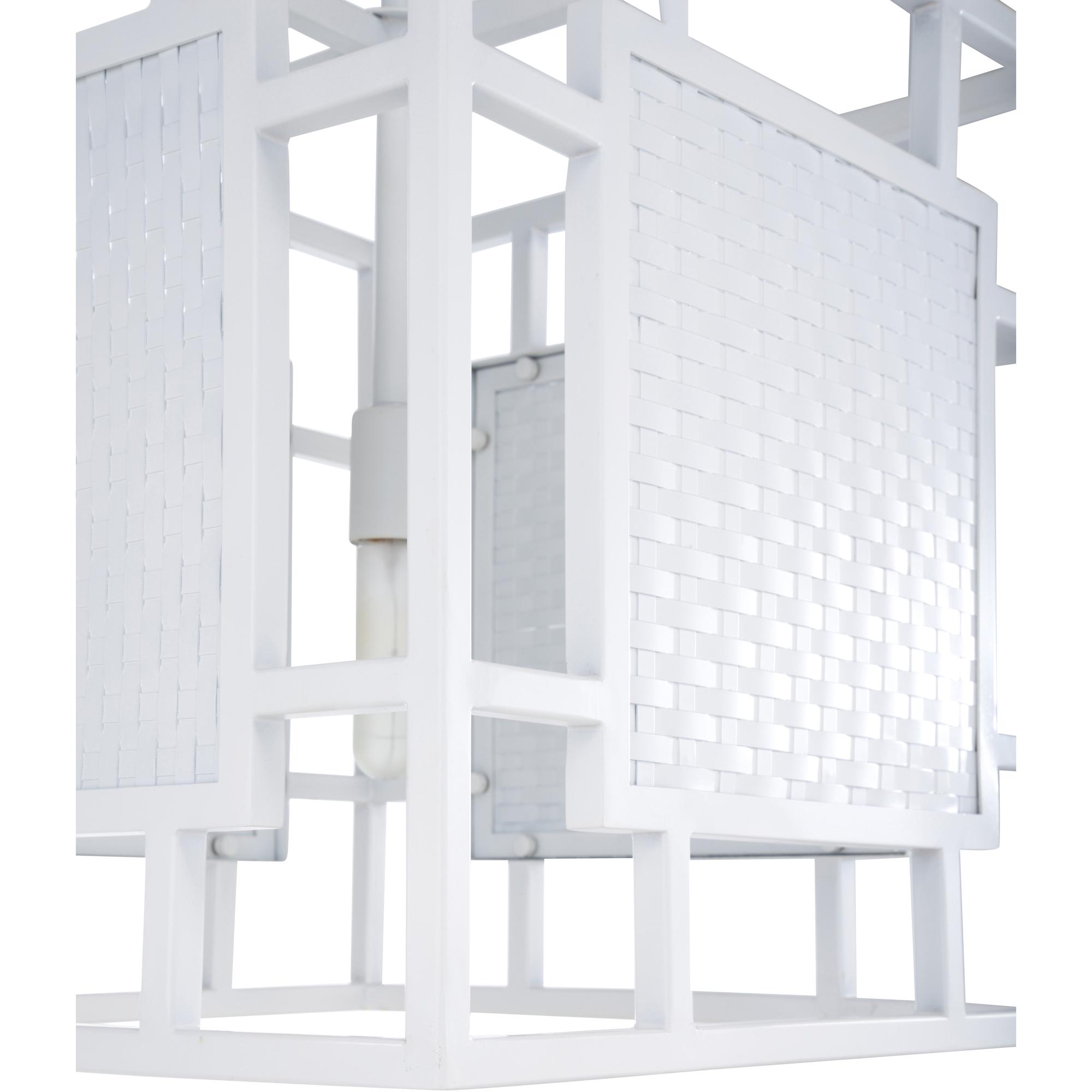 Designed to complement our Trellis collection, this one light pendant features an open frame with square, woven panel insets. Its matte white finish allows it to blend into most decorative styles. A 5.5″ diameter ceiling canopy, three 12″ rods and one 8″ rod are provided for hanging.