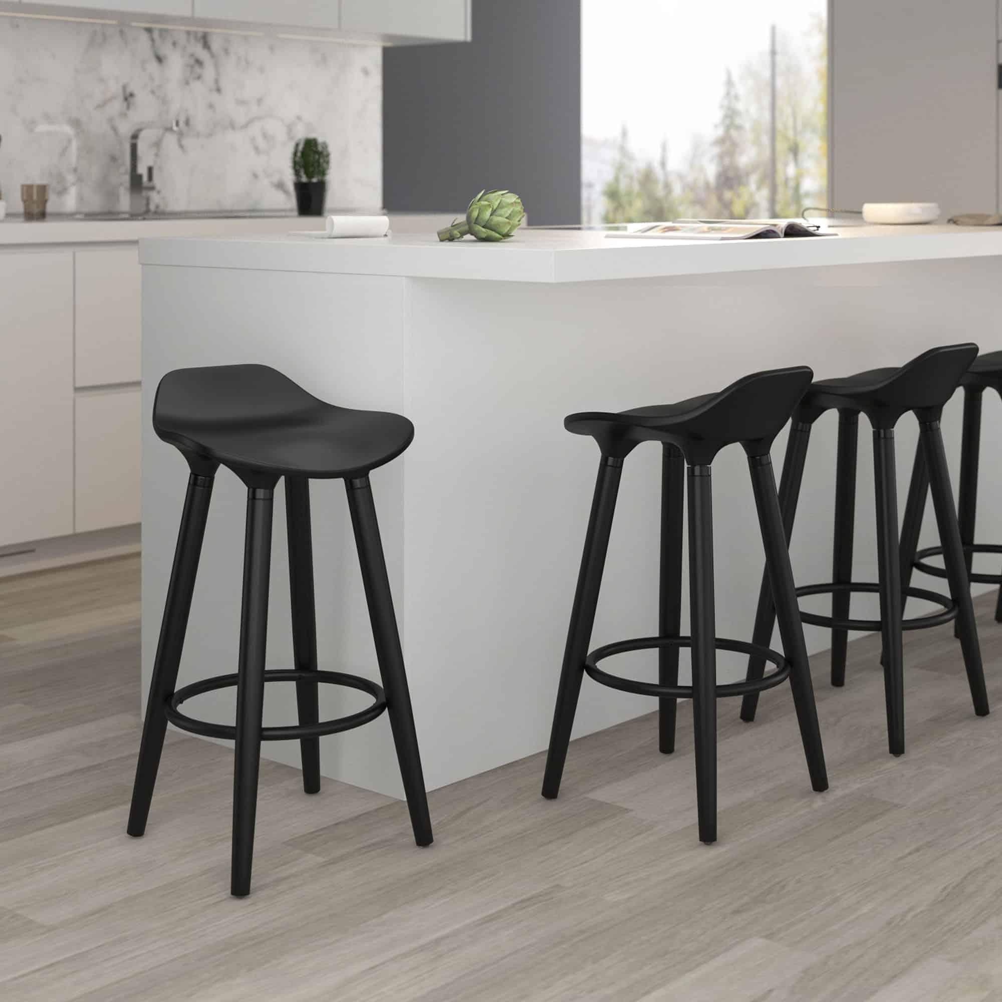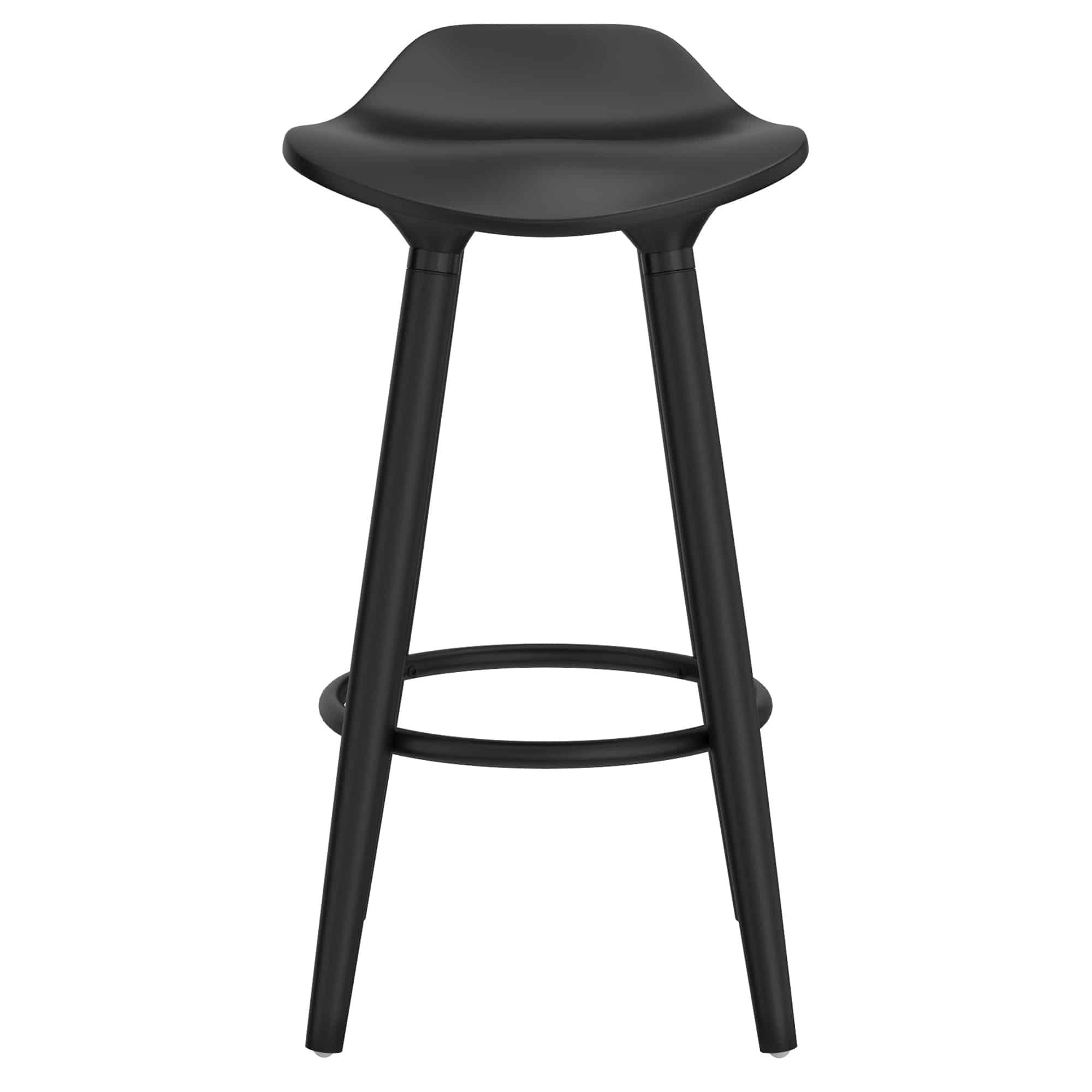 Let the curves of the seat and back on this stool provide you with hours of comfort, whether you are enjoying a drink with friend in your basement bar, or enjoying a lazy Sunday brunch at your kitchen counter. The black ABS plastic seat sitting on the black finished legs and footrest creates a seamless look that brings a bold, modern feel to your decor.
