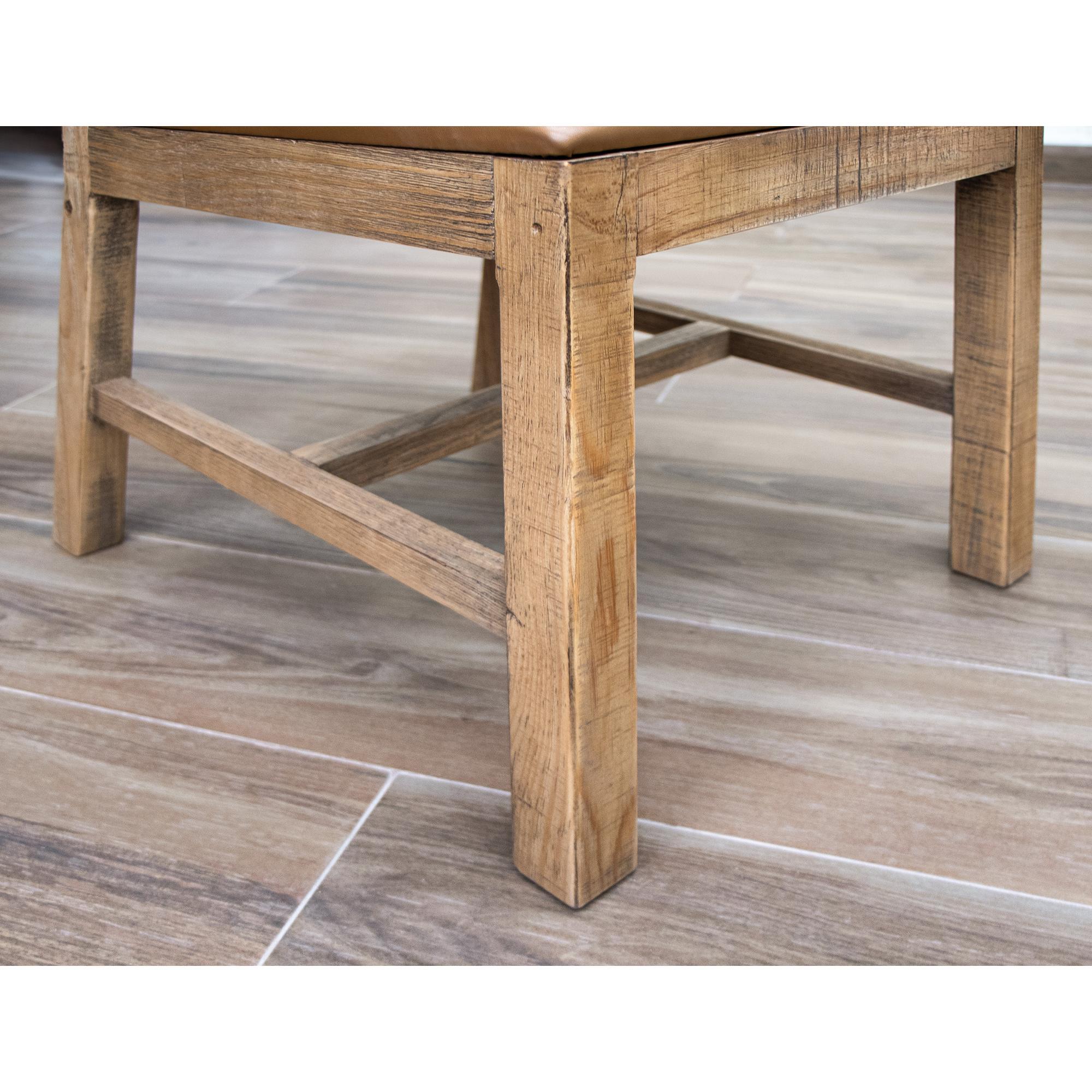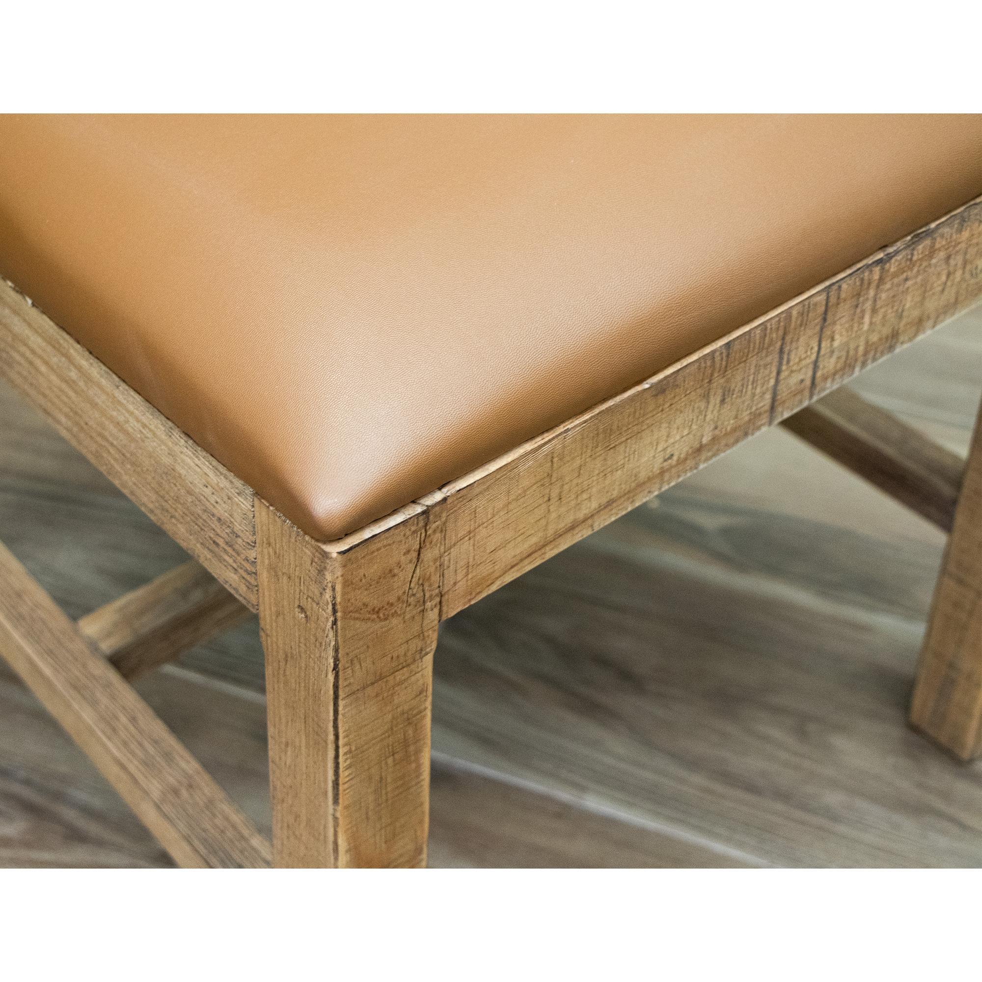 The Tulum chair, inspired by organic design principles, is meticulously crafted from wire-brushed pine wood and finished by our artisans in a natural wood tone. Additionally, its seat is upholstered in faux leather, adding a touch of sophistication to its rustic charm.