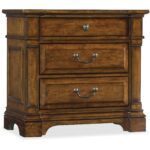 Finish: A warm, chestnut-colored, physically distressed finish over figured Alder veneers create a canvas of comfort and classic appeal for the Tynecastle collection, accented by custom hardware in an aged copper finish. Distressing includes scratch antiquing, rock, cow-tailing and rasping.