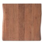 - Solid Acacia wood with a natural, water-based finish featuring a live edge