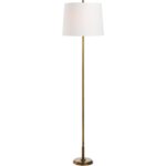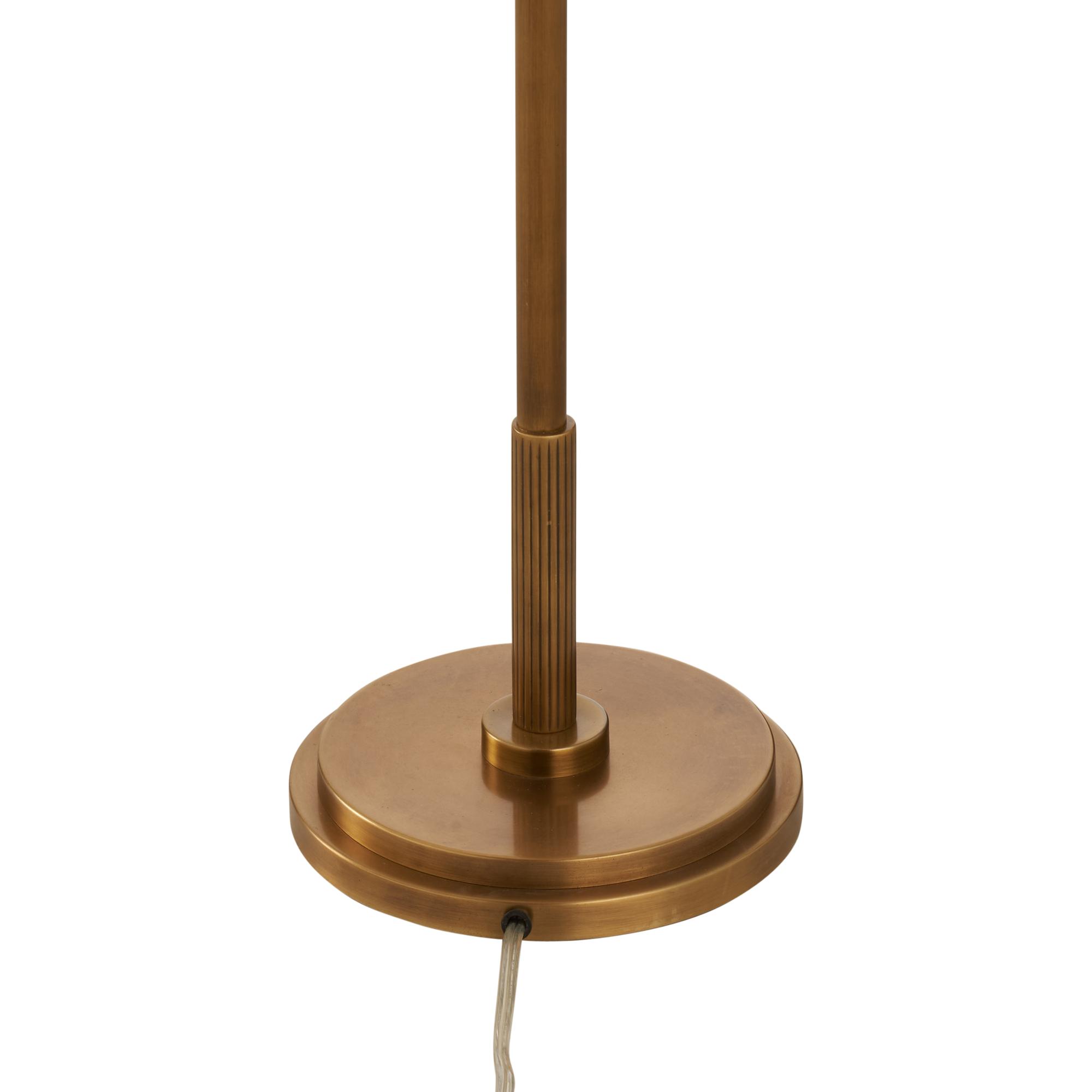 This elegant metal floor lamp features a sleek, minimalist design with a rich aged brass finish. Its warm, golden patina adds character and depth, creating a timeless look that blends vintage charm with modern simplicity. Designed by Jamie Merida