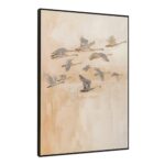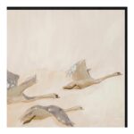 A symphony of motion captured in elegant simplicity, the Unison framed painting features geese in flight, set against a serene neutral backdrop. Art Deco inspired, and meticulously crafted with acrylic on canvas, each brushstroke contributes to the sense of forward movement.