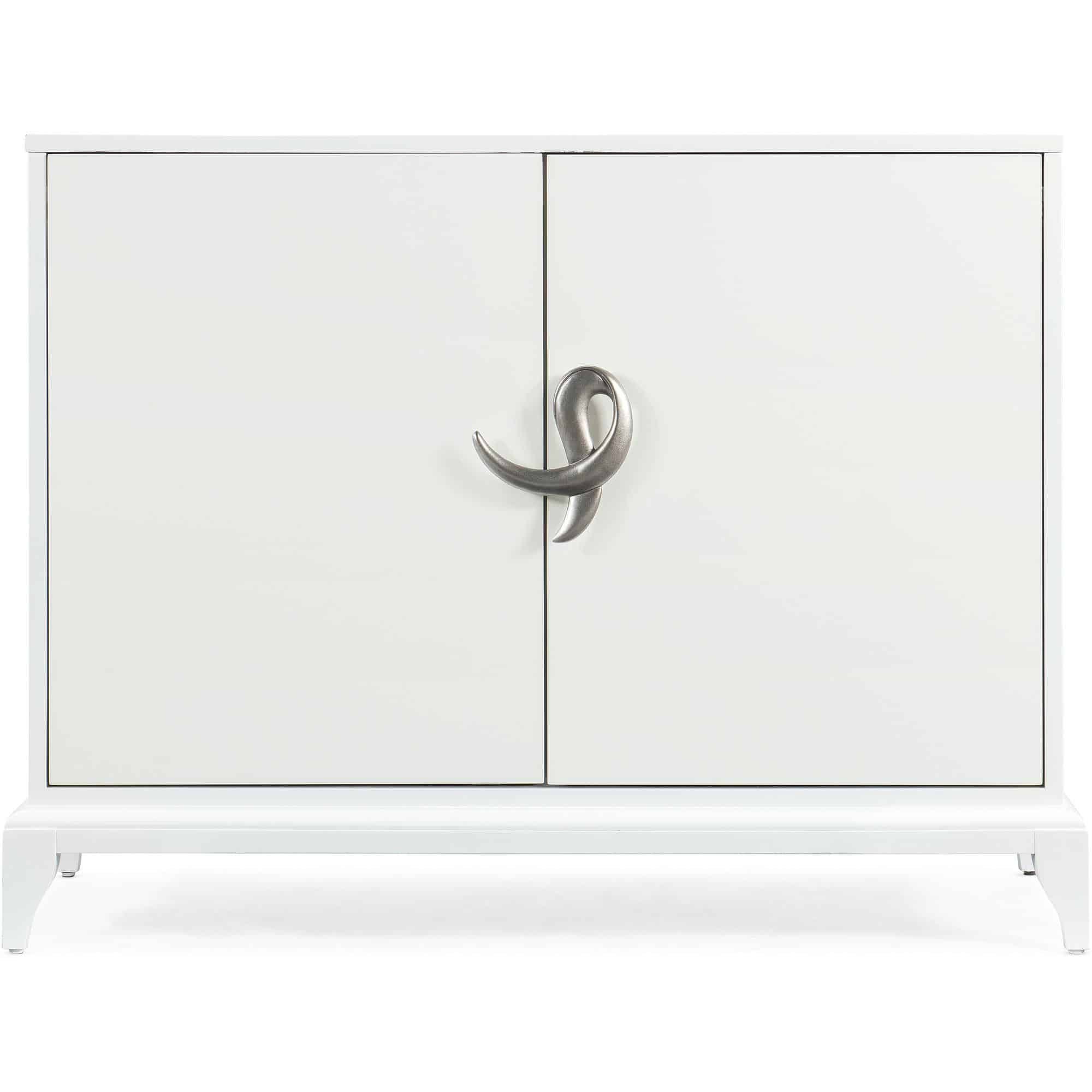 Finish: Sleek white exterior finish with contrasting magenta colored interior. Antique pewter custom ribbon designed hardware.