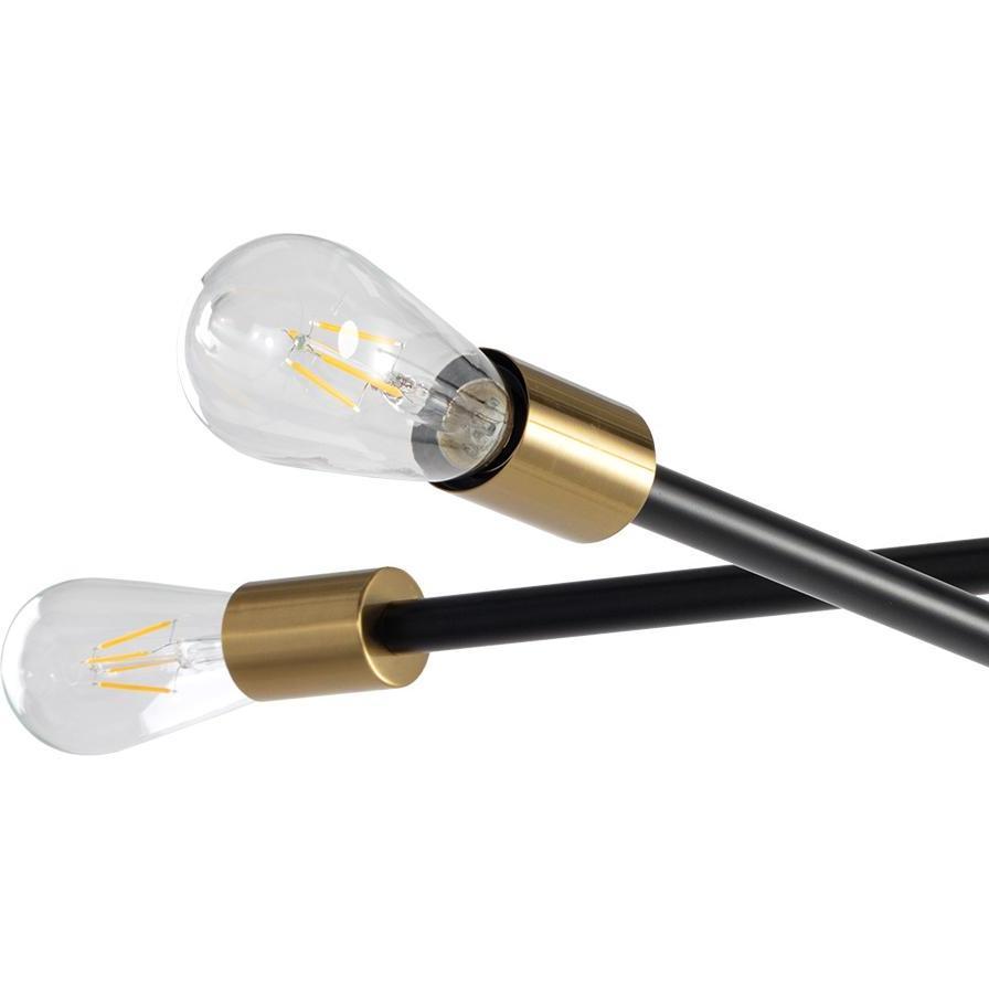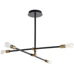 Complete an intriguing space with this modern sputnik-style chandelier. Features two adjustable crossing arms that can be rearranged. Stocked in brass and black finishes. Install multiples for a dramatic look. Requires 4 light bulbs and maximum 40 watts each.