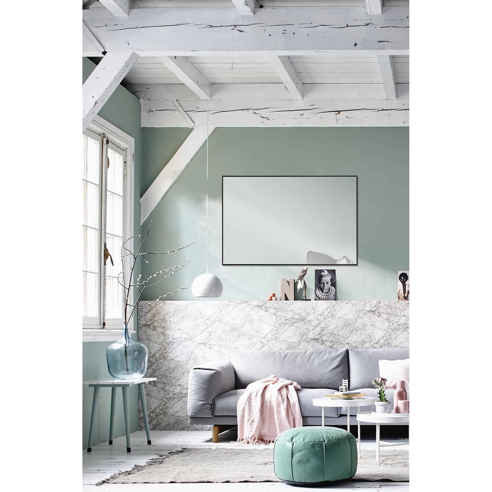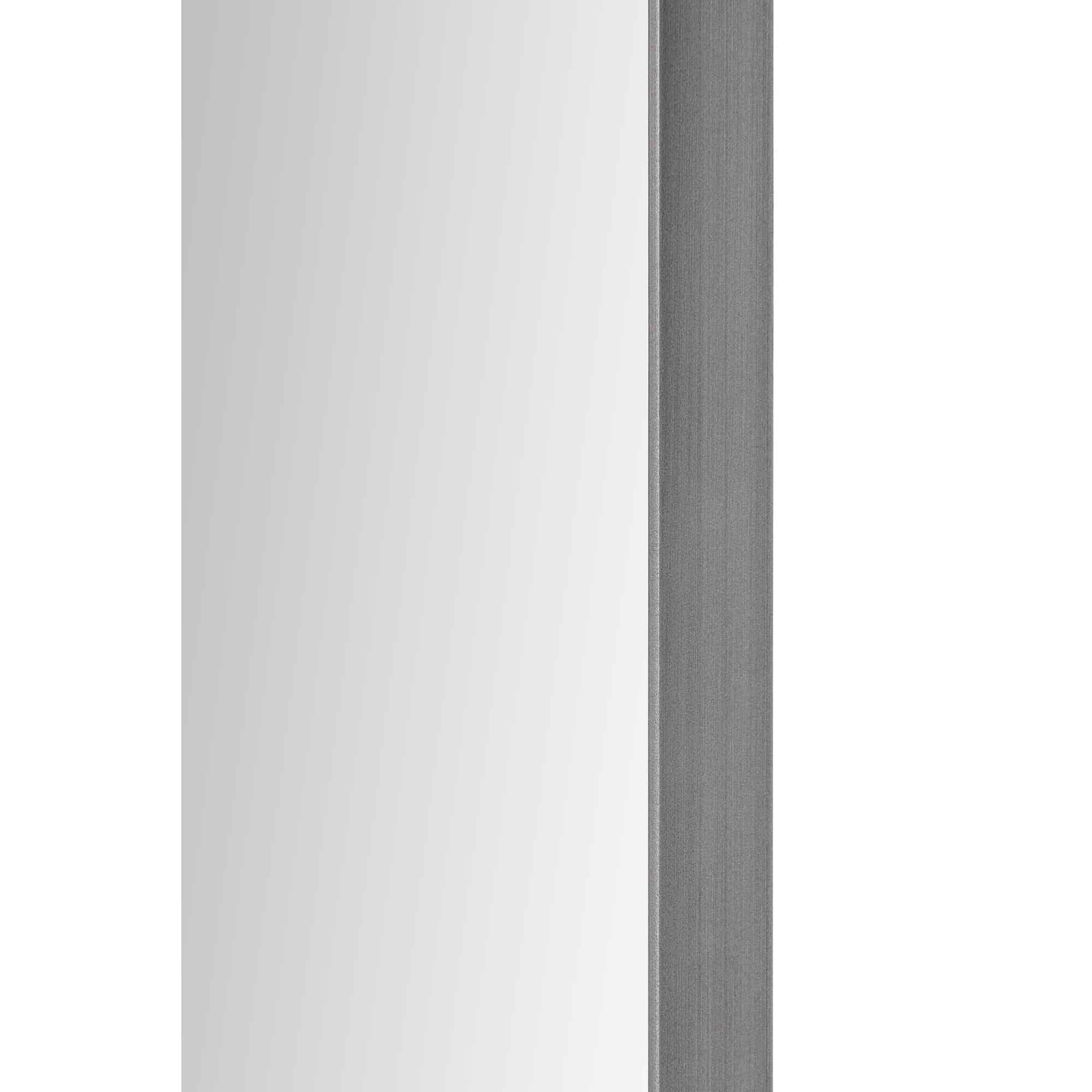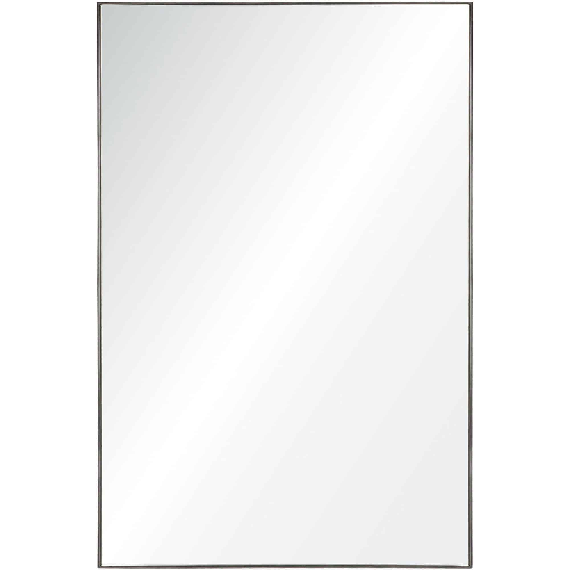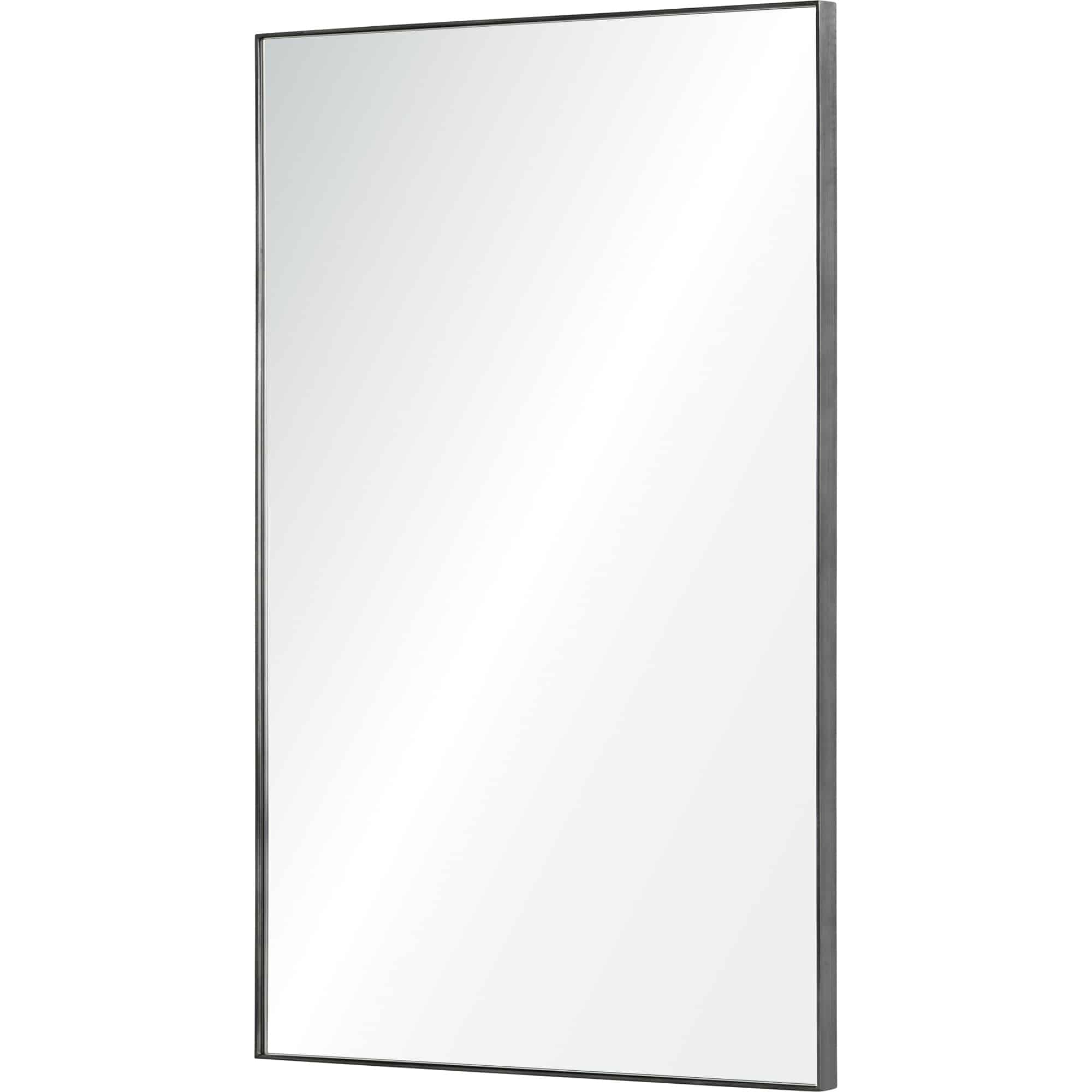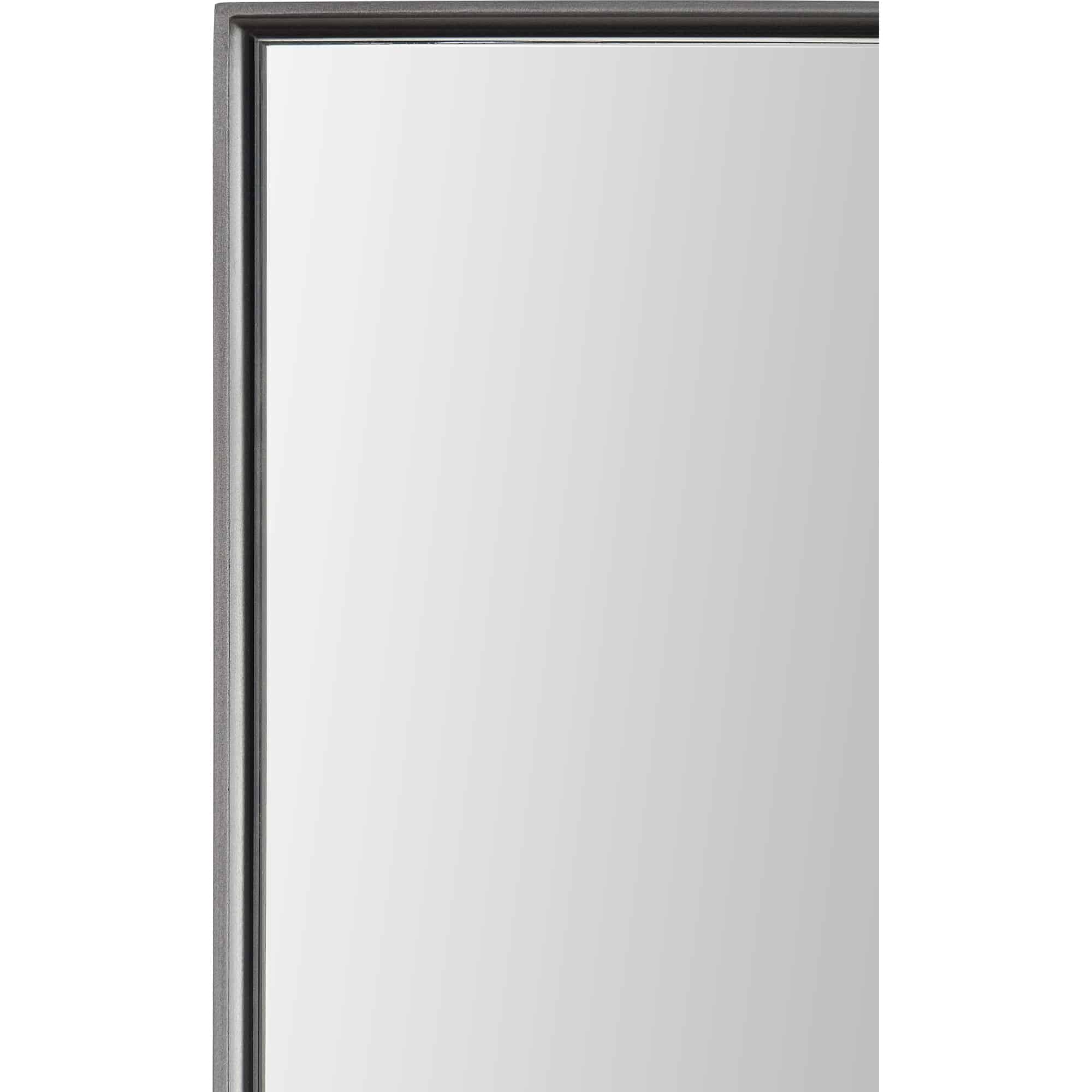 A fine charcoal gray metallic edge frames this rectangular wall mirror.