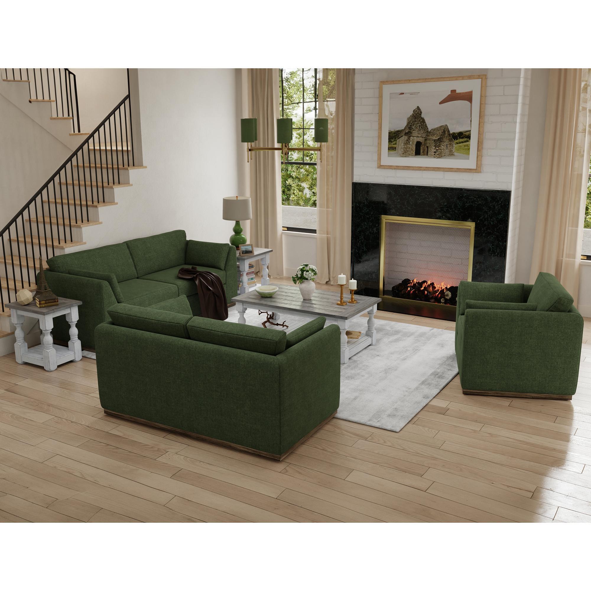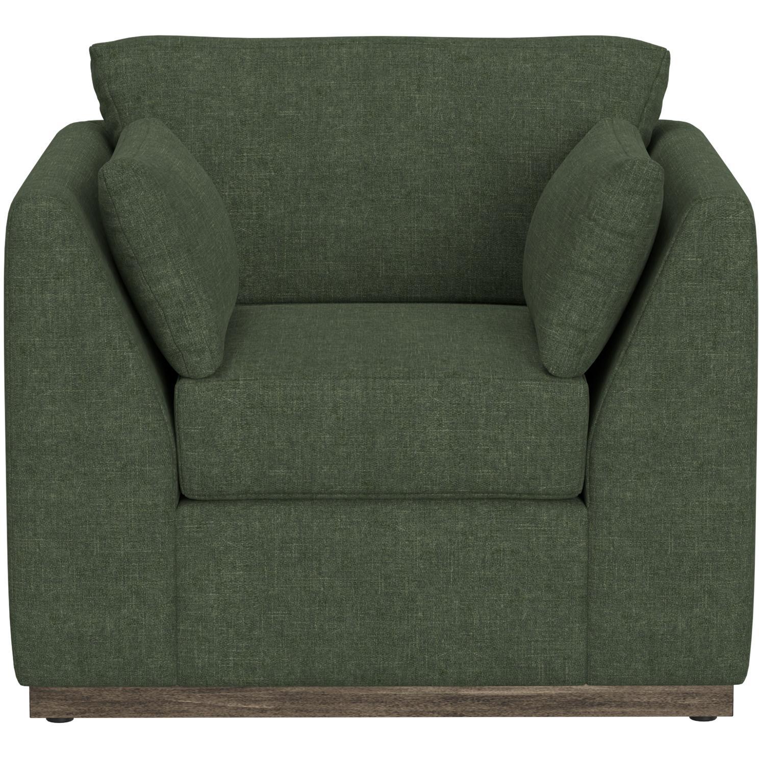 - Upholstered in an olive fabric. PFAS-free.