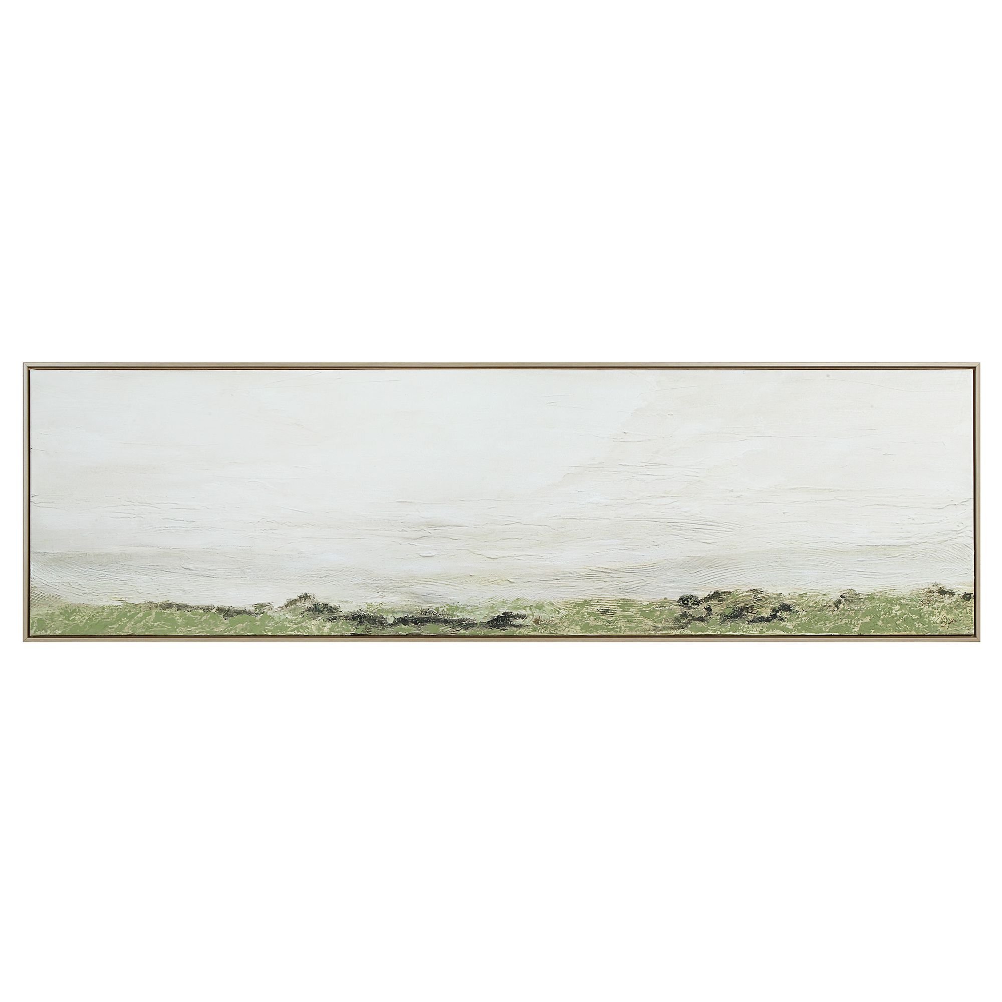 Here’s a piece for any of your design projects craving something special. With a long, slim profile, this abstract landscape painting will bring serenity and style to any interior. Designed with heavy texture and bordered with a new bleached wood-finished frame, it’s perfectly proportioned for displaying over a credenza, couch or console.