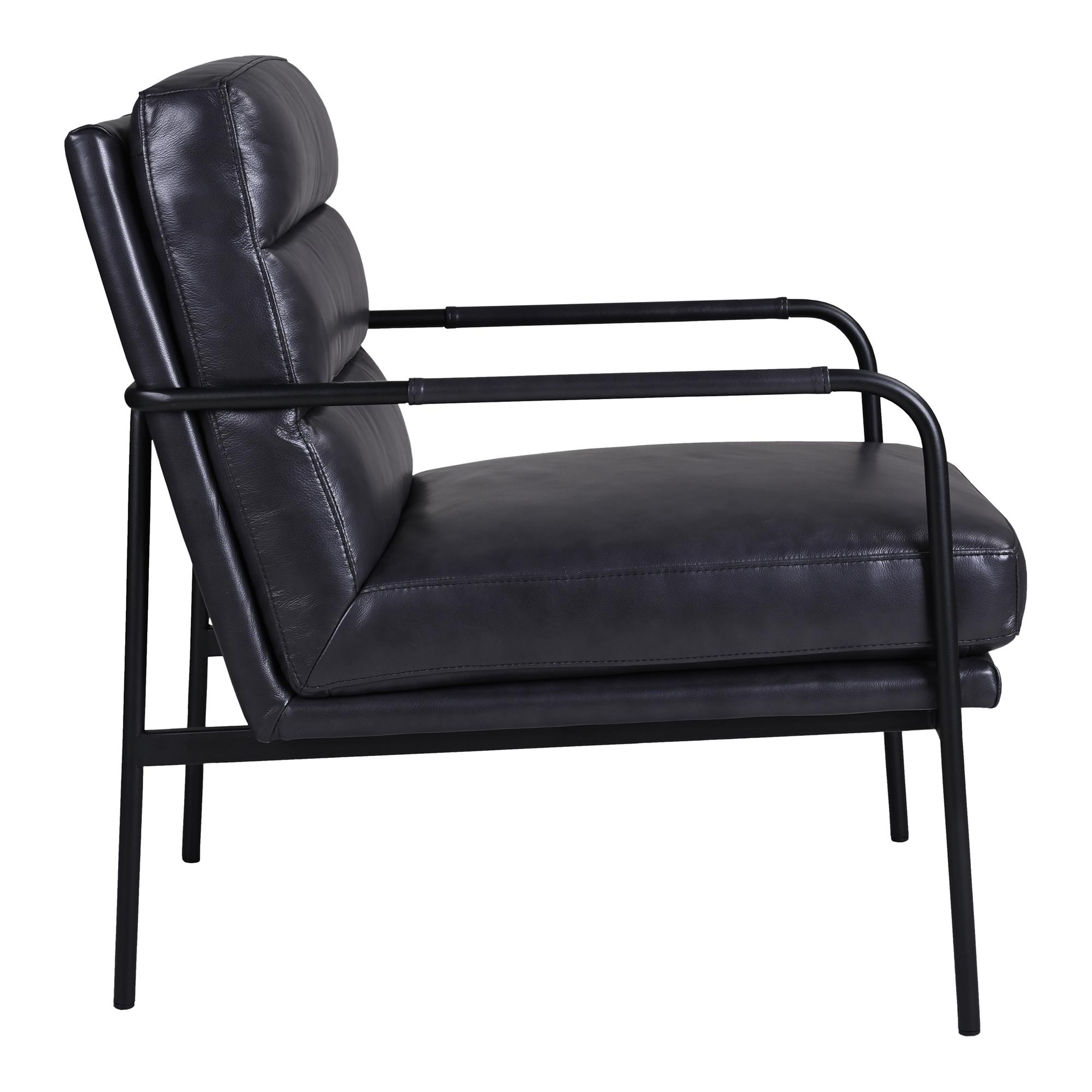 Some chairs know how to hold a room—Verlaine just happens to hold you, too. It riffs on an old-school armchair silhouette, then sharpens it up with a slim metal frame and clean, modern lines. Wrapped in raven black top-grain leather, it’s designed to age well, developing character over time. Inside, foam cushions and zig-zag spring support keep the sit comfortably supported. Consider it your new favorite landing spot.