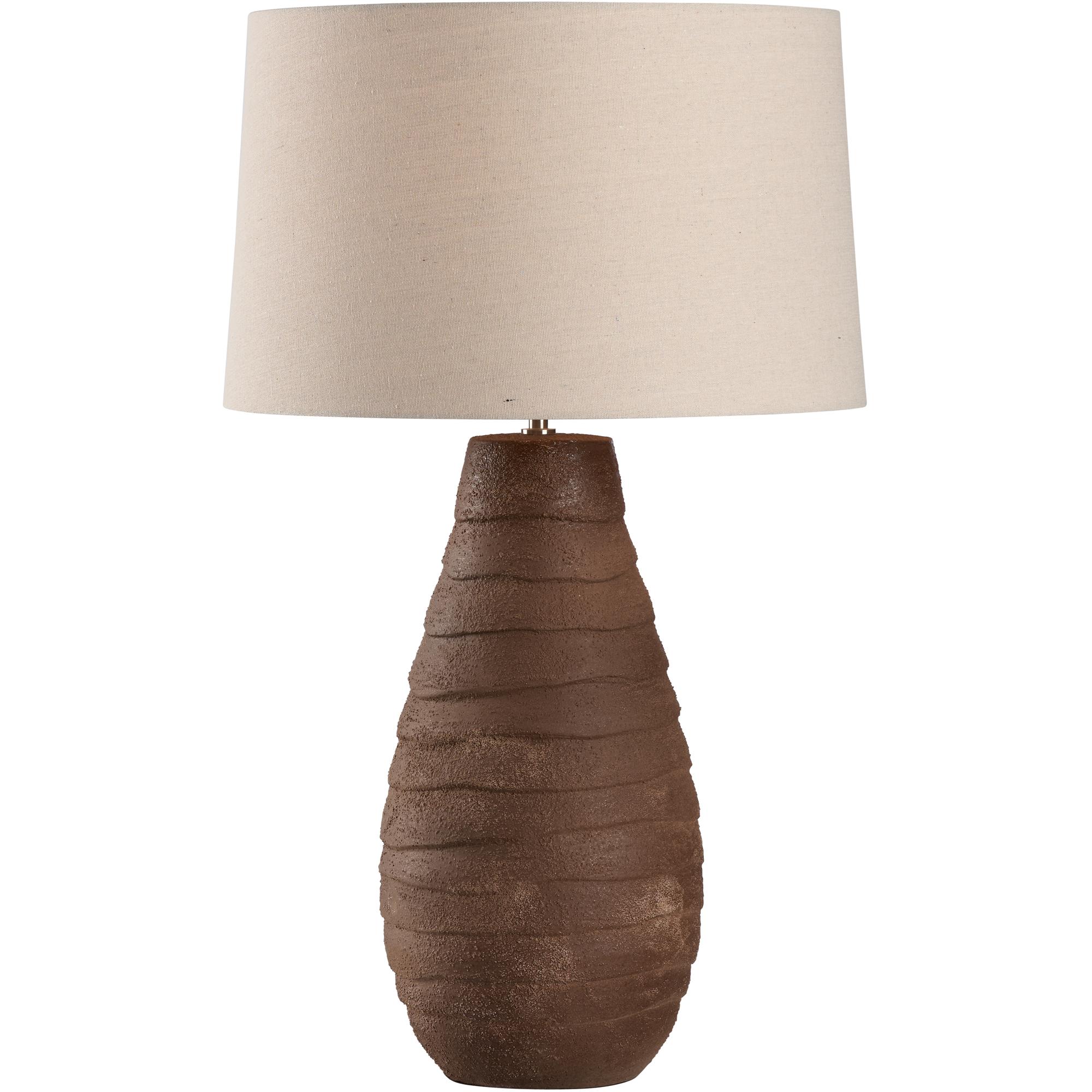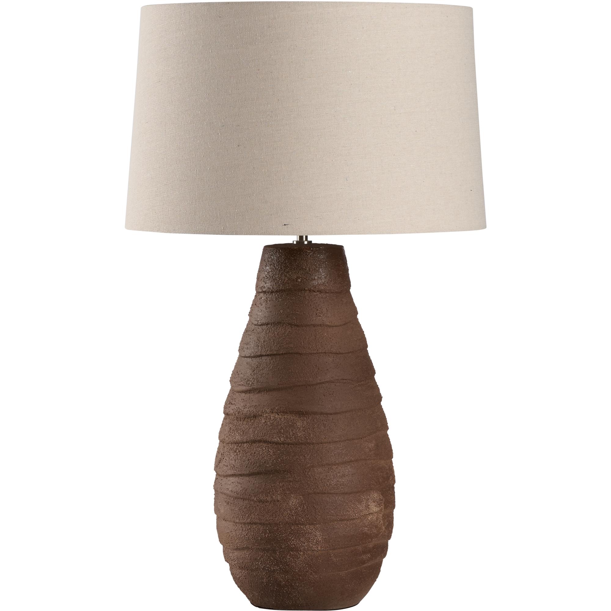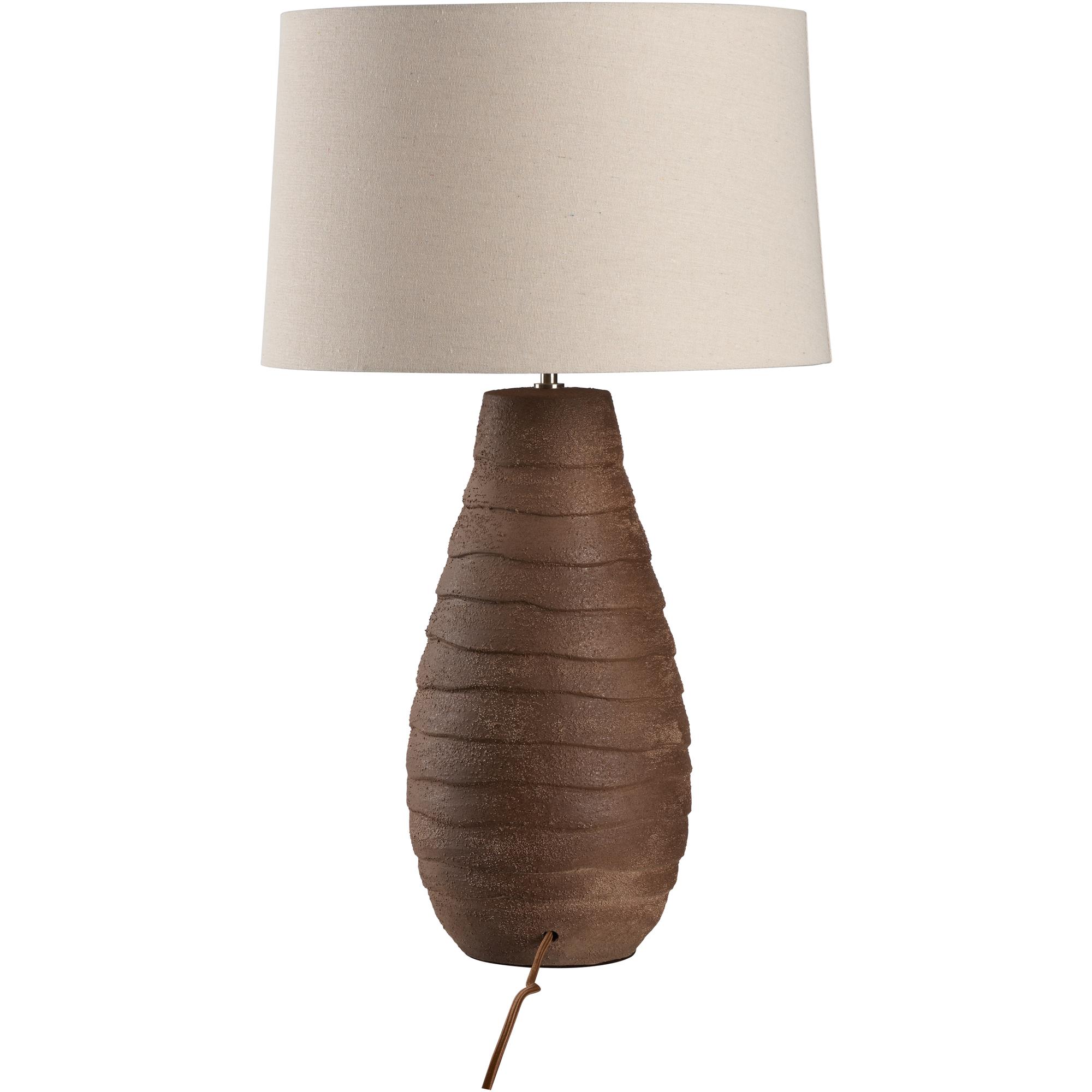 The Vespucci Lamp brings natural texture and timeless craftsmanship to your space. Made in Italy from ceramic, its ridged, organic form is finished in a rich, earthy tone with a raw, tactile surface that adds depth and warmth. Paired with a simple linen drum shade, this lamp is a grounded, versatile accent for any space.