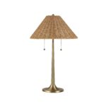 Boasting a timeless aesthetic, this classic table lamp marries natural rattan and dark antique brushed brass to deliver a transitional touch to any space. Its woven shade softly filters light for an ambient glow while its richly patinaed body warms up the room with old-world charm. Include one or a pair in your decorating scheme for an instantly adored update.