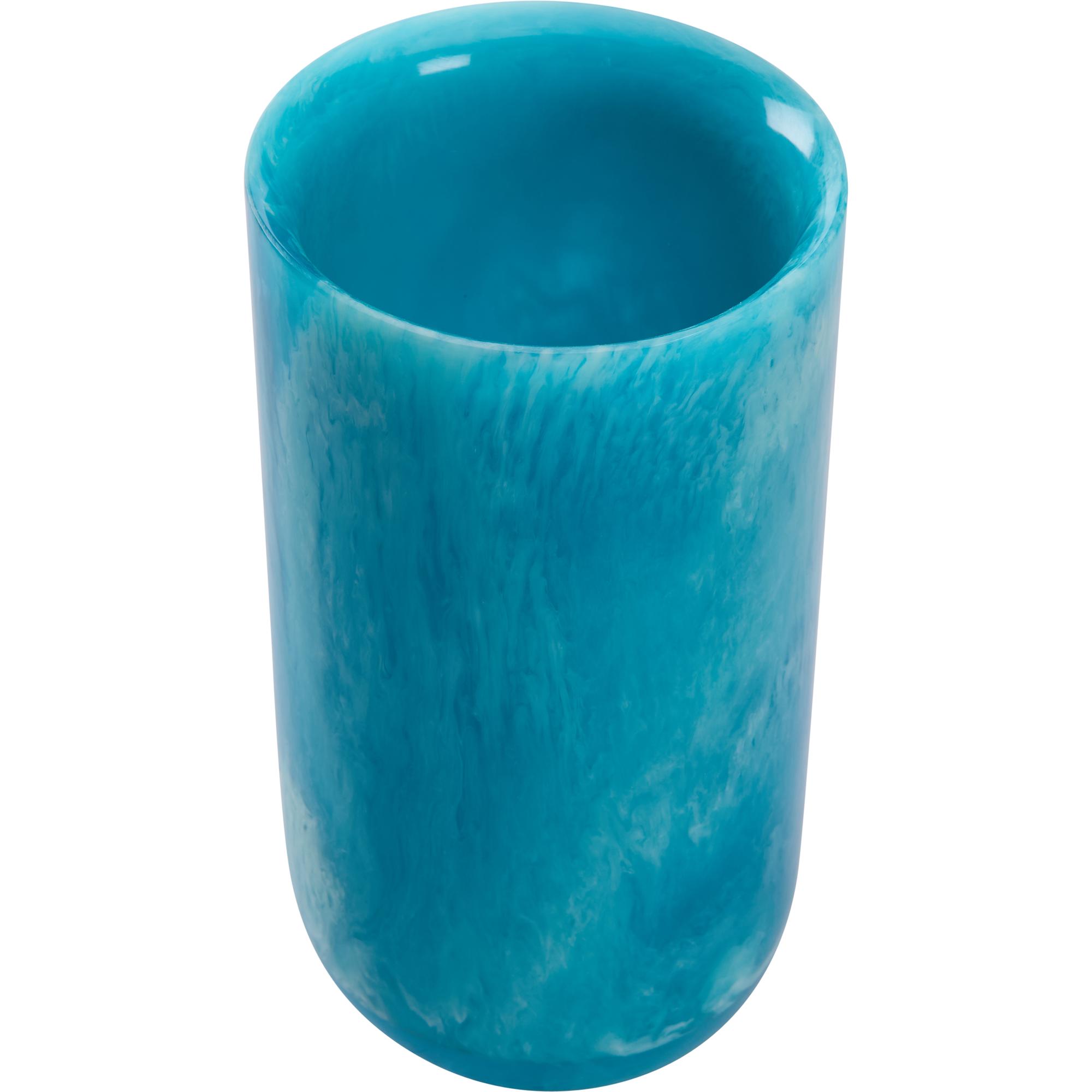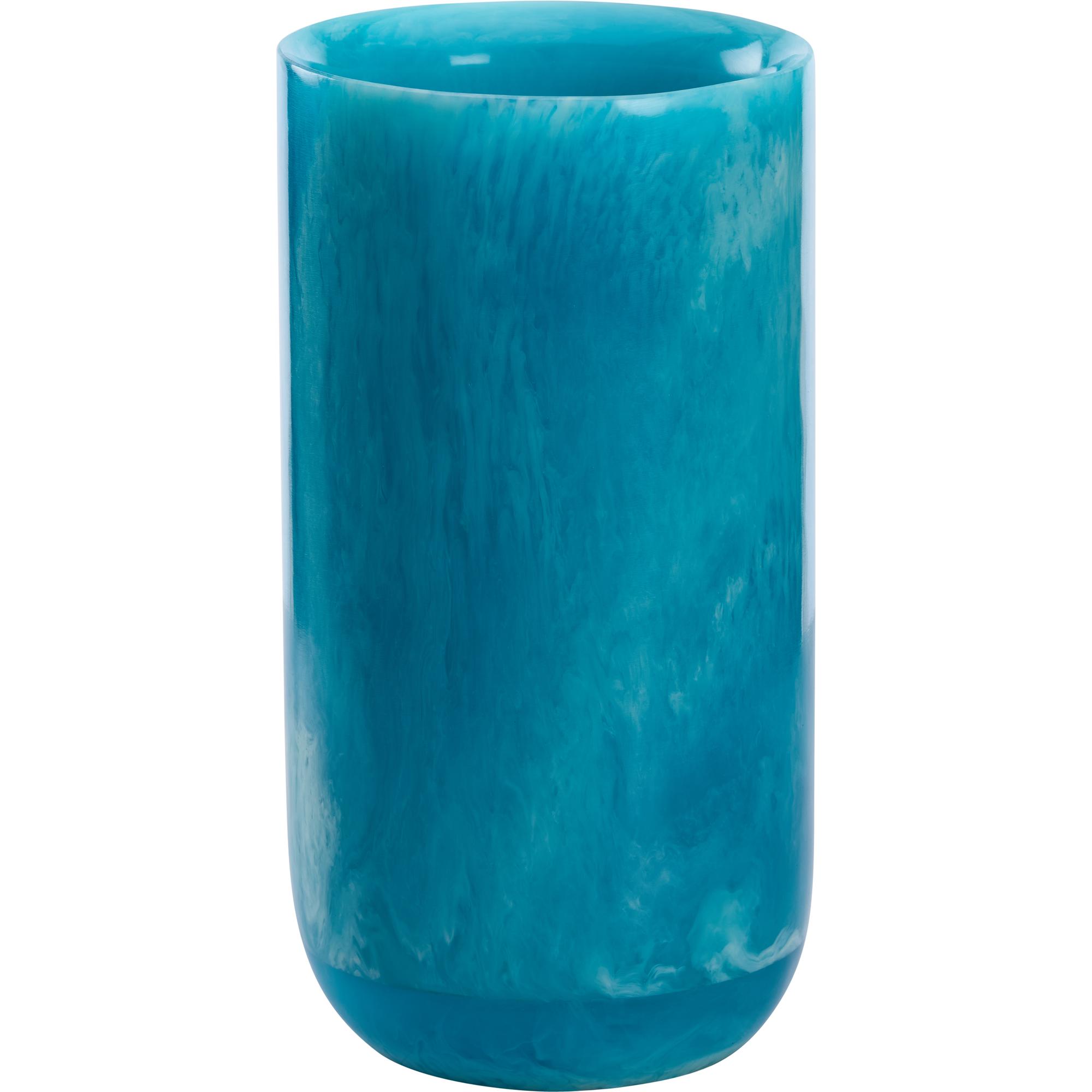 Modern artistry in motion. This vase is part of three marbled blue resin cylinder vases showcases fluid patterns and sleek silhouettes. Varying in height, they create a stunning display together or apart.