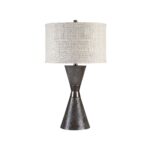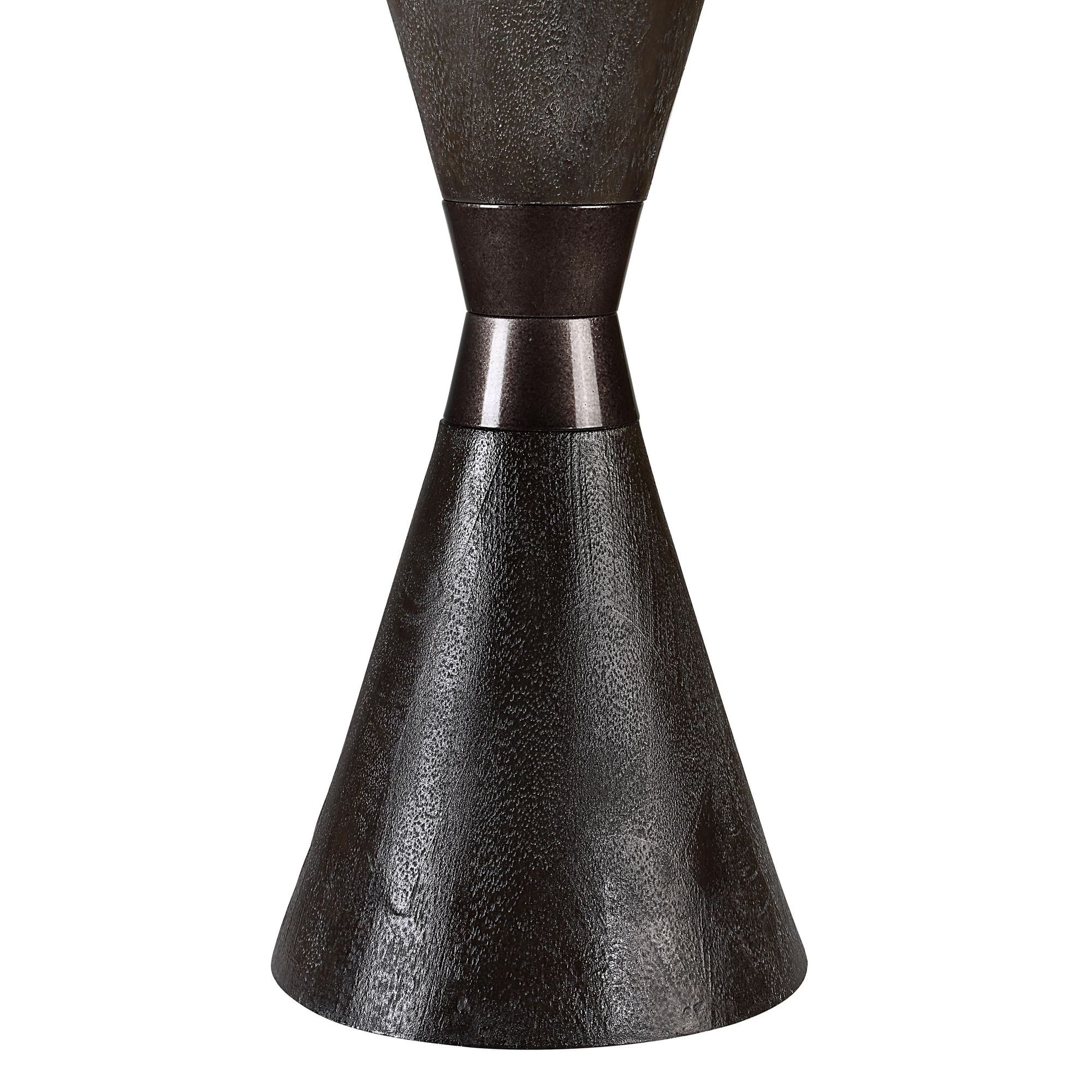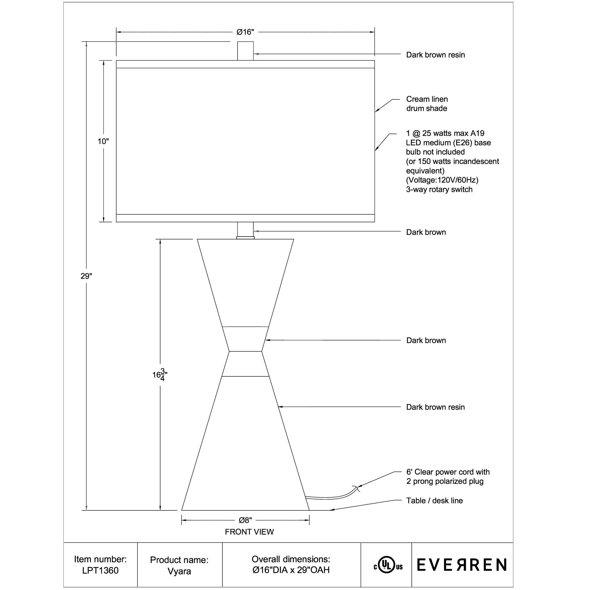 Anyone looking for an ideal finishing touch for any contemporary setting, will want to discover the Vyara table lamp. An angular hourglass form crafted in a dark brown finish brings visual interest to the room while a light-filtering linen drum shade casts a warm glow for all to admire. Go for an asymmetrical look with just one, or double-down with a pair for perfect balance in any space.