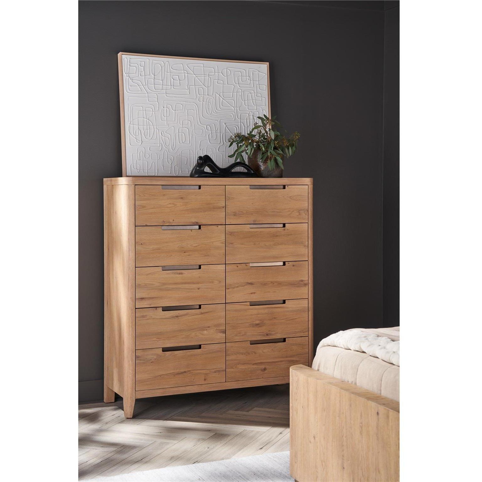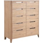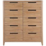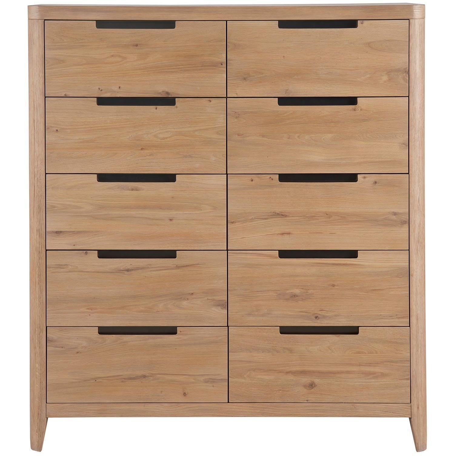 The Walker Drawer Chest, with its ten drawers, presents a modern interpretation of symmetry and balance. Clad in an organic Natural Oak finish and accented with sleek dark-toned pulls, this piece embodies a refined yet contemporary aesthetic. Its clean lines and minimalist design lend a stately, modern vibe to any interior, blending seamlessly with cutting-edge decor.