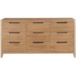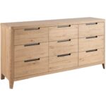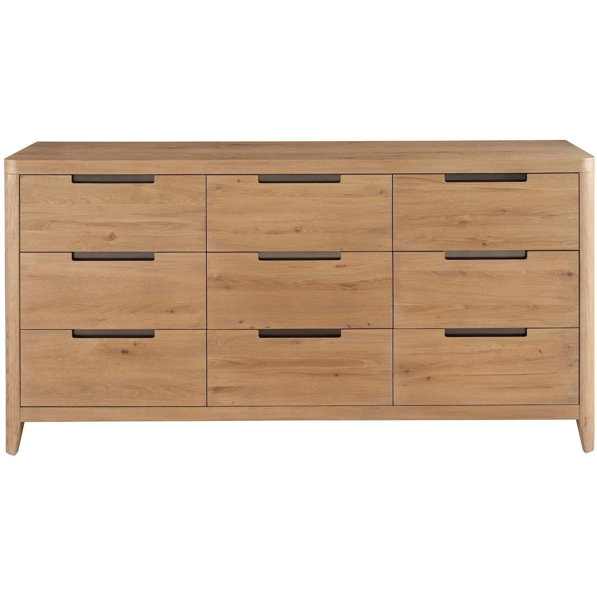 The Walker Drawer Dresser boasts nine drawers and is finished in an organic Natural Oak, offering a versatile and dynamic piece that’s as functional as it is aesthetically pleasing. Its natural finish highlights the inherent beauty of the wood, making this dresser a timeless addition to any bedroom seeking a blend of practicality and natural elegance.