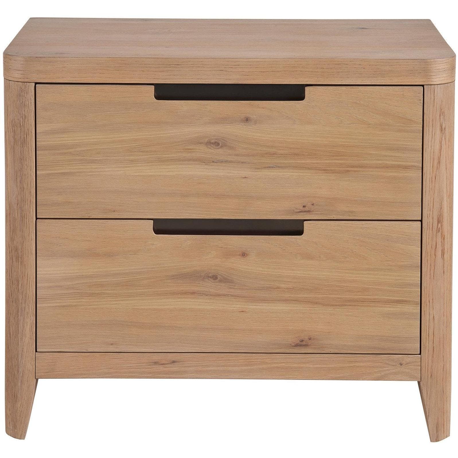 The Walker Nightstand, with its two drawers and Natural Oak finish, embodies a sleek, simplistic silhouette that merges classic design with a modern infusion. This piece captures the essence of contemporary elegance, offering a streamlined aesthetic that complements a wide range of bedroom decors.