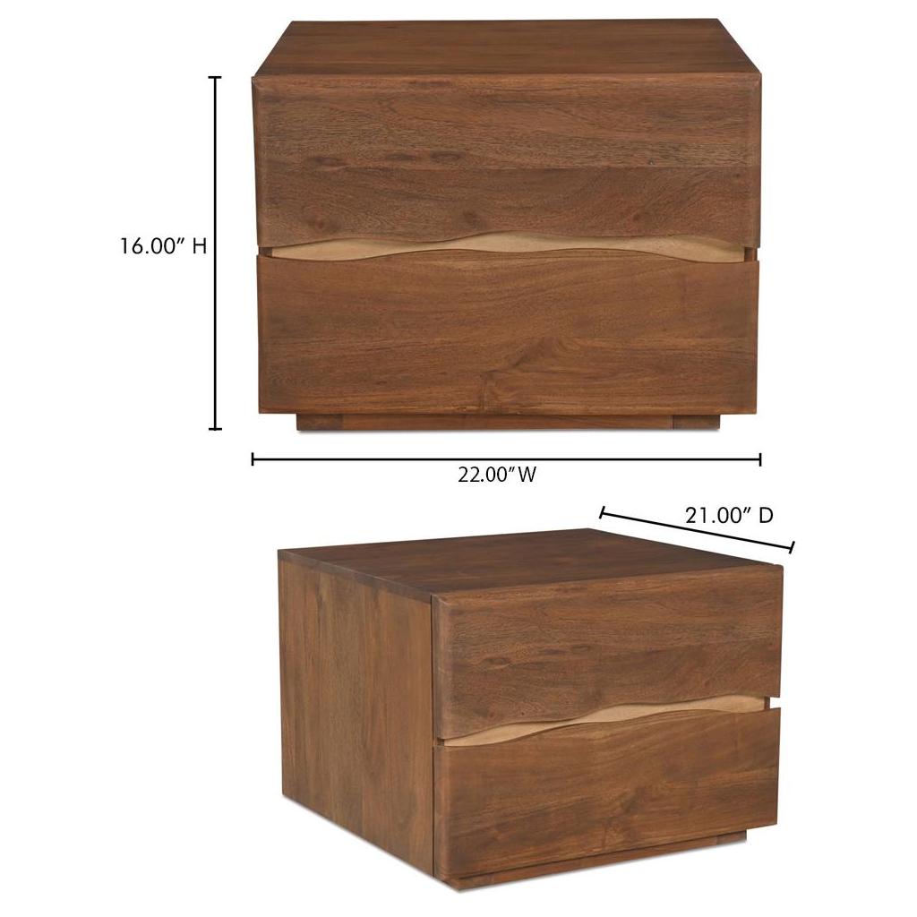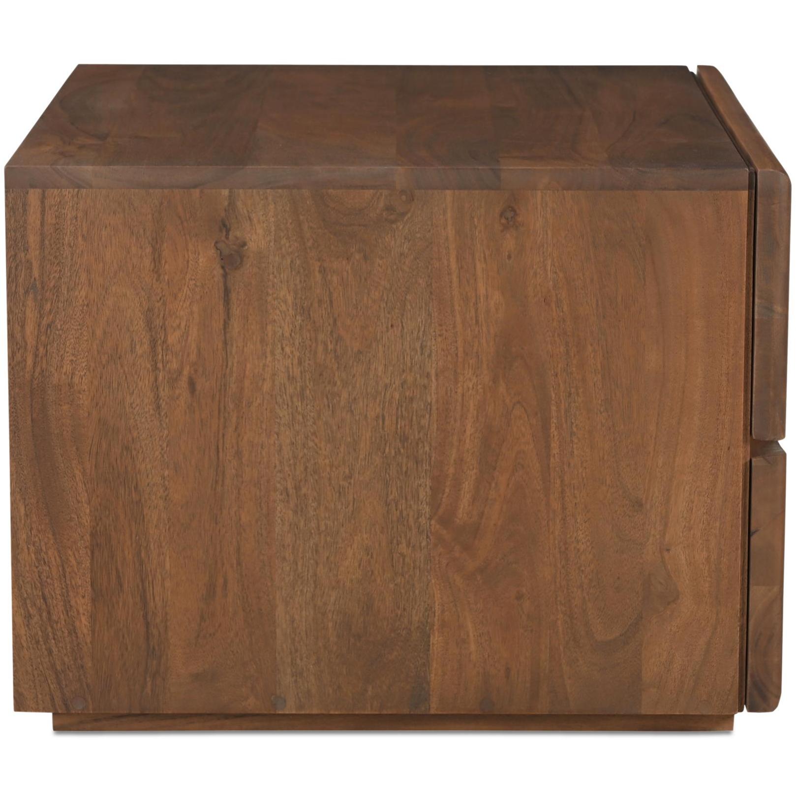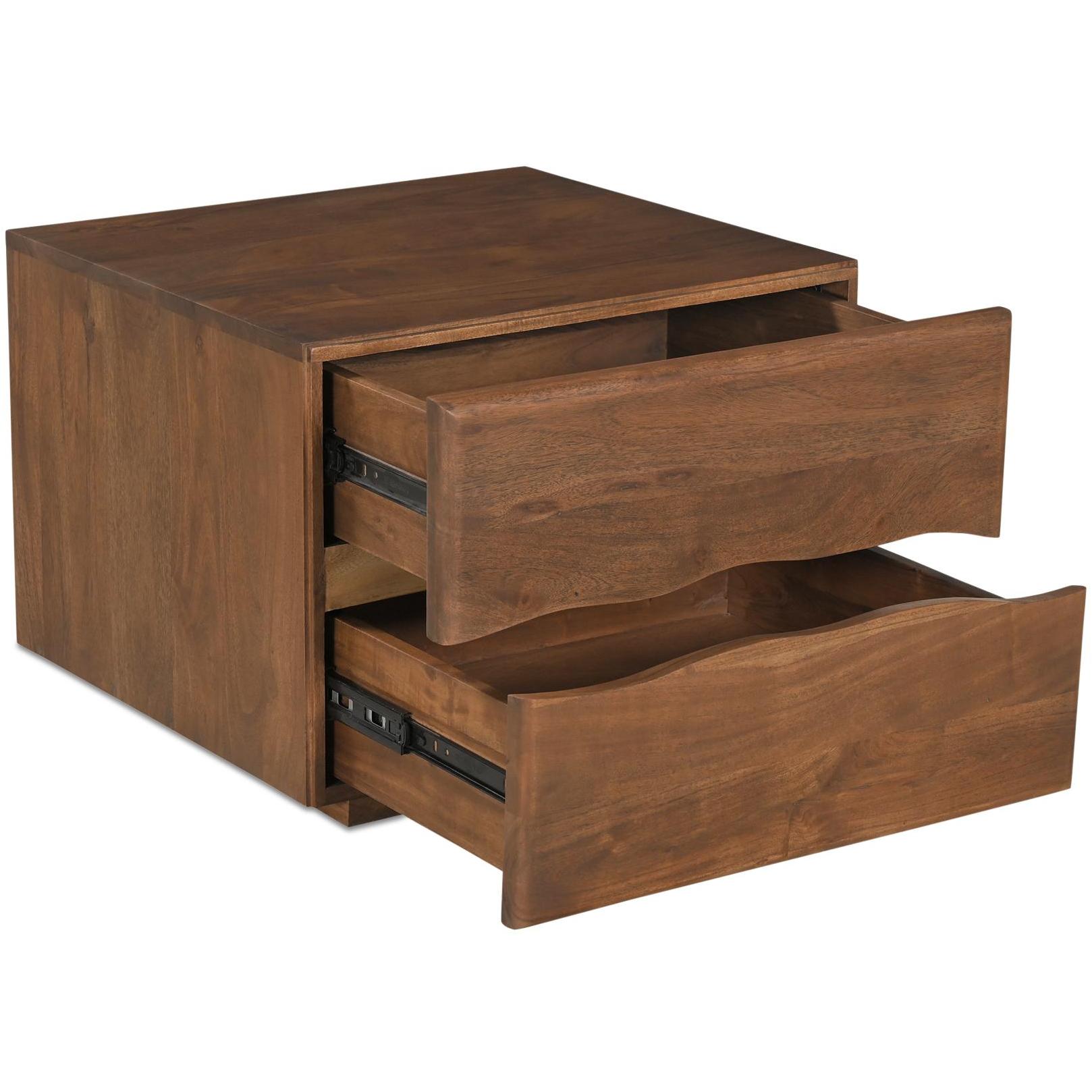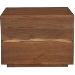 The Watson nightstand is a refined blend of organic charm and modern sensibility. The clean, contemporary aesthetic resonates through its use of live-edge detail on solid Acacia, while thoughtfully rounded edges and a lessened wooden slab thickness amplify its appeal. Two spacious drawers are fitted with side-mount metal ball-bearing glides and safety stops for a smooth, seamless feel.